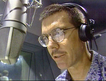 Bickard shakes his head upon finishing. Then, with his thin frame moving to the edge of his seat, and right fist in the air (left clutched around the bundle of pages), he reads his red pen rewrite: All right! Kitchen Stadium welcoming the first challenger who specializes in Thai food. It'll be Iron Chef Chen's spicy Szechwan fare against challenger Morikawa's heat-seeking Thai dishes, dukin' it out with pineapples, the theme...we are set. Let's get it on! Spicy dialogue is one thing; filling time is another. For the same show, the schedule demands that the following bit be eight seconds:Today, we should be expecting a lot different spices. Doc, are you ready? "Well, that's 3 or 4 (seconds)," Bickard surmises. "If I don't prepare something beforehand I'm just going to be hemming and hawing in the studio." The following is his solution: And Chen already slicing up pineapples there...while on the other side, the 39-year old Morikawa...looks like garlic. And Doc, ready for the spices? "I give it that sports drip," Bickard says of his improvisation. "I have important things to say; I'd rather add some background information with a sports-rap style." This approach is taken for a reason: Fukui himself is a professional sports announcer. In the original Japanese, Fukui routinely adds phrases about baseball to the mix. Keeping it fresh is always a concern, and with repetition being a common aspect of the Japanese language, it is not simple. Bickard continually reminds himself to not get stuck in a rut with the phrasing and puns. The call "not much talk but a lot a wok" was used just once, and "finding favor with flavor" finds itself on the air occasionally. Such old standbys as "double-barrel chopping action" and the show's signature "Whose cuisine reigns supreme?" are fixtures. "Cutting board cam" is a recent addition to the lexicon. Since the original Japanese show has been discontinued, the English dubbing taking place is of back episodes specifically for use by Food Network. The dubbing of one episode takes roughly 6 hours. During the battle sequence, the voices for the four or five main characters can work through a script within an hour. The various other components of the show, like the opening segments, display of dishes, comments of the tasters, recap, and interview sessions with the chefs, are all recorded individually with the appropriate voice. Added later are some sound treatments, occasional echo effects on the voices, and other post-production work. This recipe has proved to be quite popular. Three years ago, UPN used William Shatner to portray Kaga for "Iron Chef USA," a program which lasted only two episodes. Food Network as well debuted "Iron Chef America" earlier this year with Alton Brown taking announcer and color duties. It is hard to ignore that a lot of the show's great success - as evidenced by multiple fan websites and marathon showings on Food Network - goes beyond cooking; a main ingredient certainly is the cheese factor. The irony inherent within elevating top-notch chefs to that of warriors as the ostentatious Kaga, meanwhile, sinks his teeth into a bell pepper can easily be seen as parody. Bickard acknowledges this, however, only to a point. "Camp can't carry this show," he says. "The whole cheesey thing," he maintains, does not overshadow the fact that these are some world-class chefs going at it here - this is some dead-serious stuff. They are fighting out there, putting their reputations and abilities on the line. There is no prize money. There are no awards. It is all about personal pride."And for Bickard, too. He admits that while his output can be simultaneously witty and "a little lame," there is an element of satisfaction for him in that the show is on American television. "As the ZZ Top song says, 'I'm bad, I'm nationwide,'" he jokes. A "simple guy in the kitchen" whose beef and cheese burrito wrapped in a steamed tortilla is his signature dish, Bickard got his start in college radio doing sports announcing. During his 20 years behind the microphone, some of his work has included hosting call-in talk shows, providing his voice for video games, and doing the public address announcing at Tokyo Dome for various foreign sporting events. His work with "Iron Chef" began in 1999 when he successfully passed a series of auditions through a company for which he was doing voice work in Tokyo. He's been "wokin' and rollin'" ever since. For Bickard, each week of recording is a challenge. It is a chance to create something new, to make someone who watches the show want to watch it again. "I have an opportunity to do that," he says, "so why not take advantage?" |