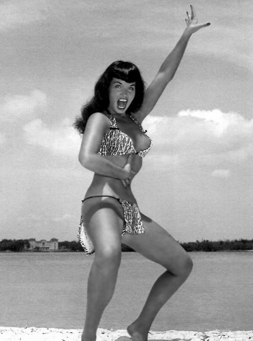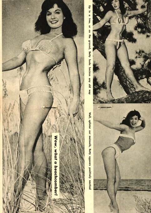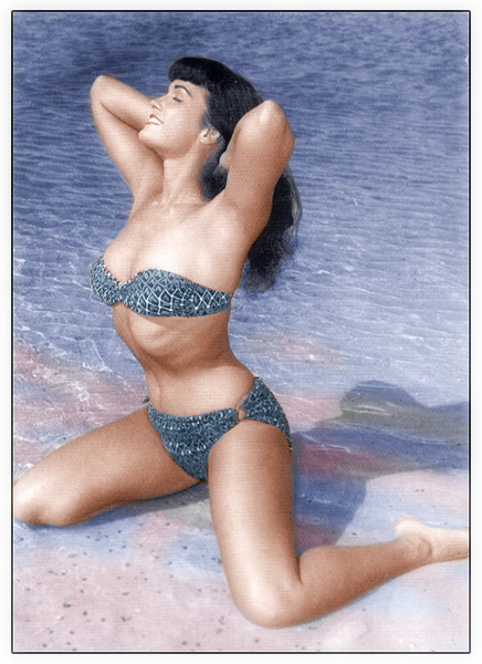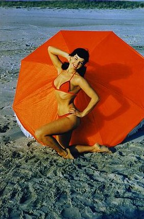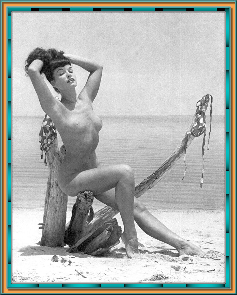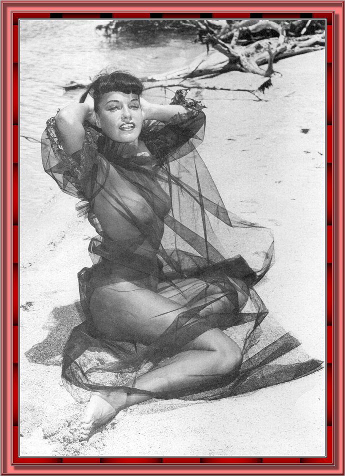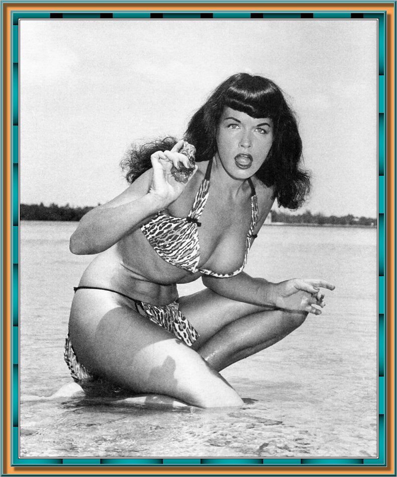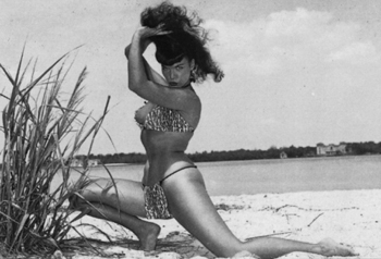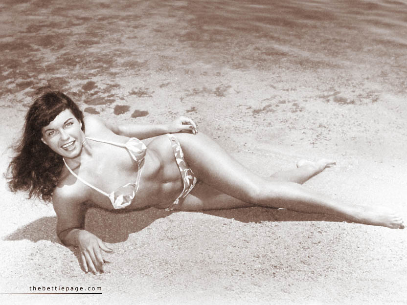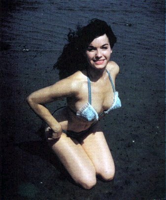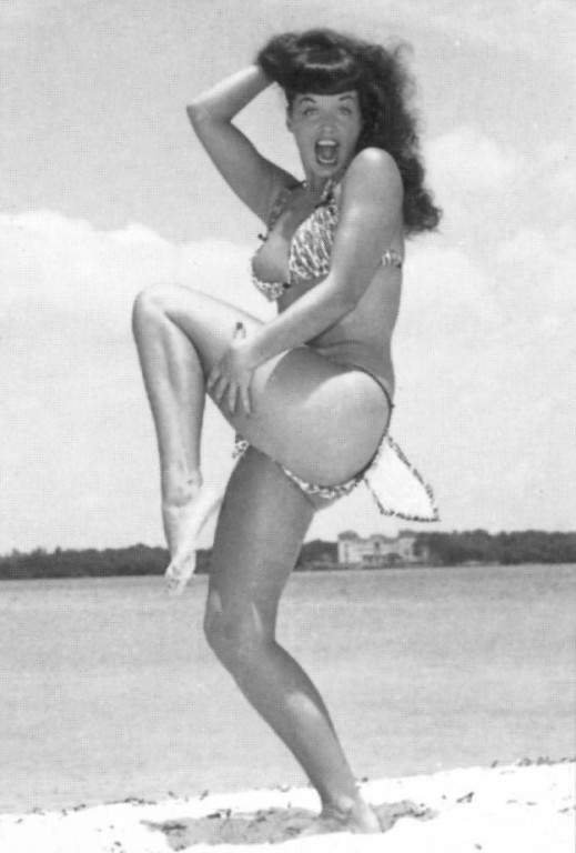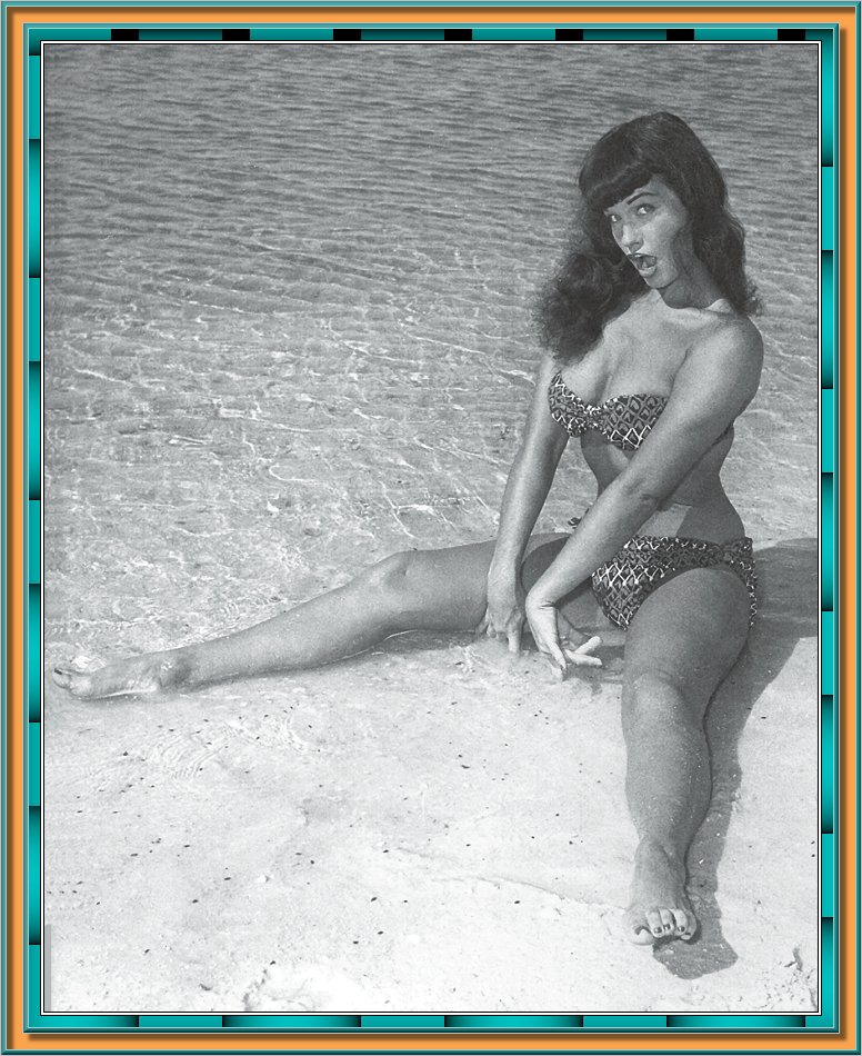 | Bettie Page particularly enjoyed working at the beach. These are some of the many beach shots she had taken. |