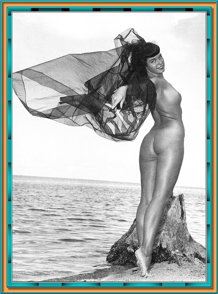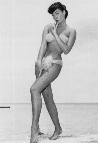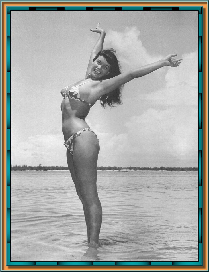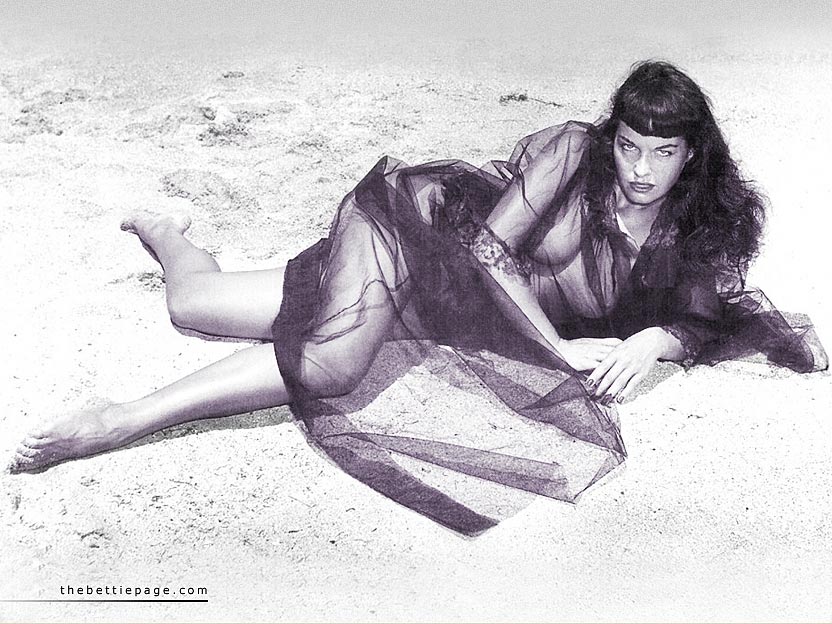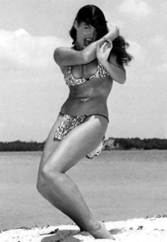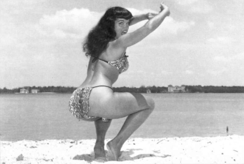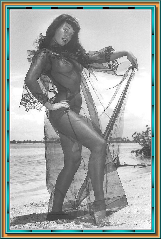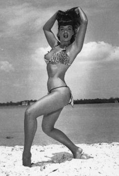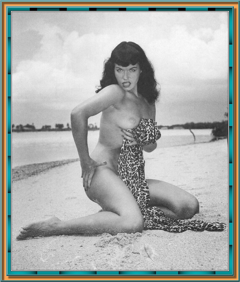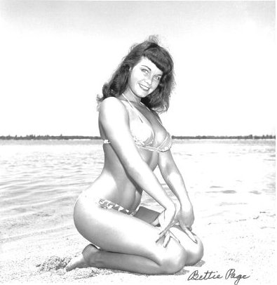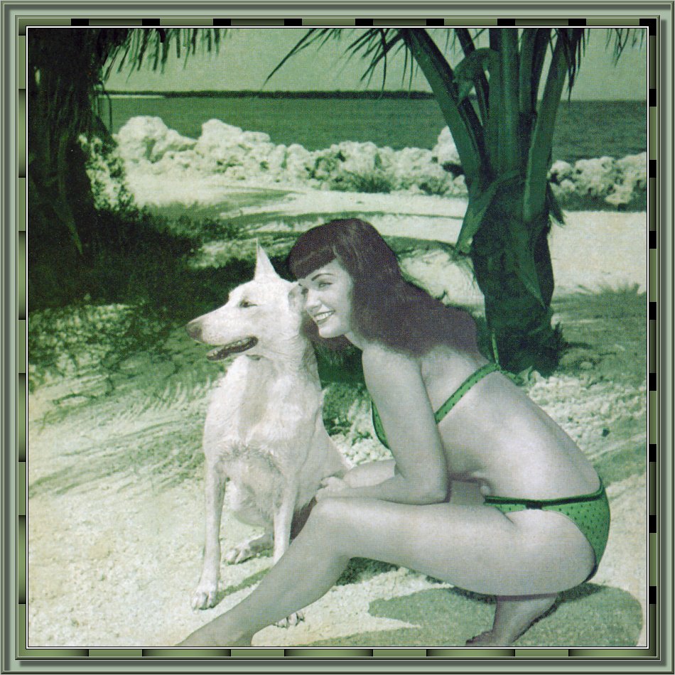 | Bettie Page particularly enjoyed working at the beach. These are some of the many beach shots she had taken. |