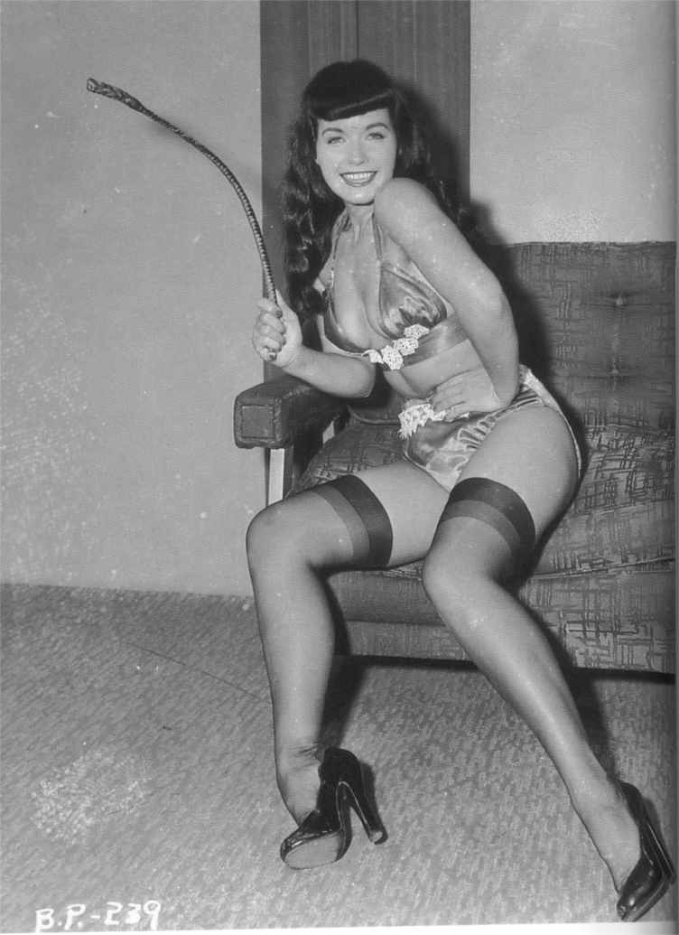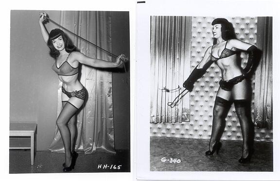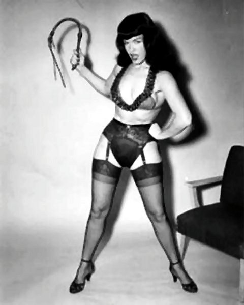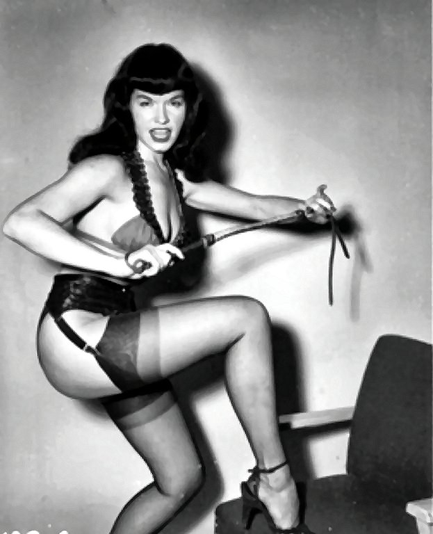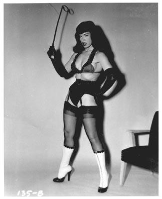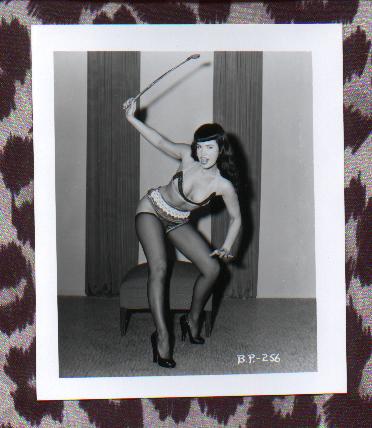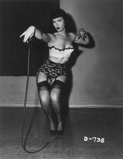 There are MANY photos of dominatrix Bettie, with a whip or a crop.
