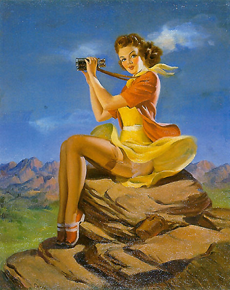 with a style somewhat reminiscent of Norman Rockwell's although more