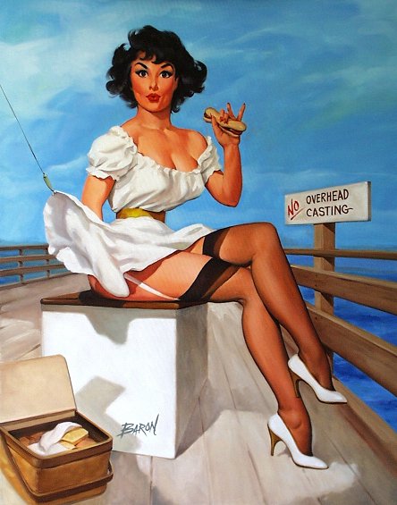 Pinups painted by: Gil Elvgren, Earl Macpherson, Earl Moran, Alberto Vargas, Edward Runci, Art Frahm, Donald Rust, Robert Skemp, Bill Medcalf. Zoe Mozert