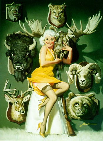 Pinups painted by: Gil Elvgren, Earl Macpherson, Earl Moran, Alberto Vargas, Edward Runci, Art Frahm, Donald Rust, Robert Skemp, Bill Medcalf. Zoe Mozert