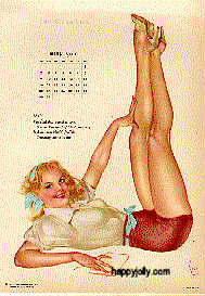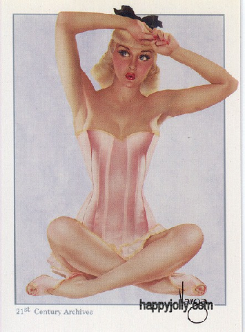 Pinups painted by: Gil Elvgren, Earl Macpherson, Earl Moran, Alberto Vargas, Edward Runci, Art Frahm, Donald Rust, Robert Skemp, Bill Medcalf. Zoe Mozert