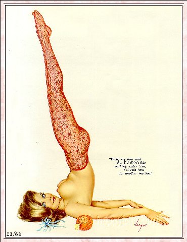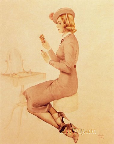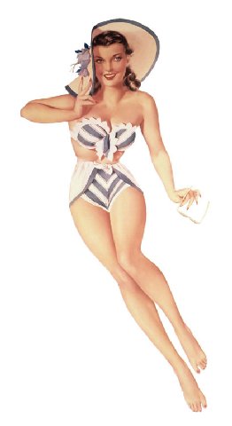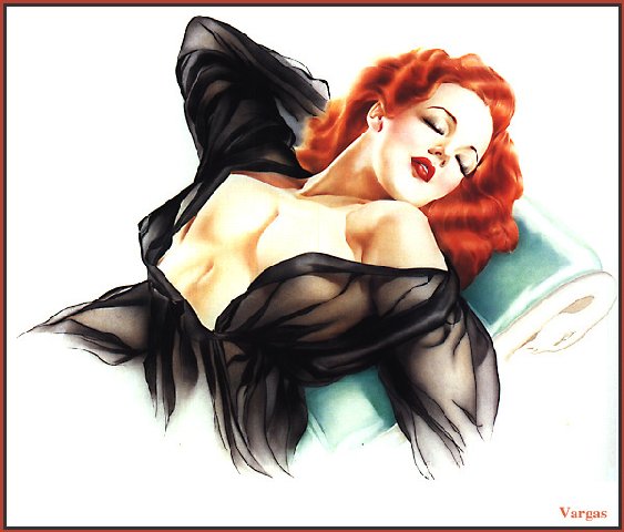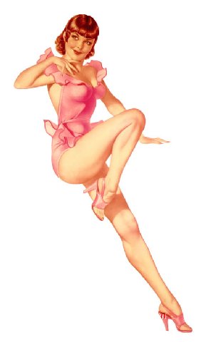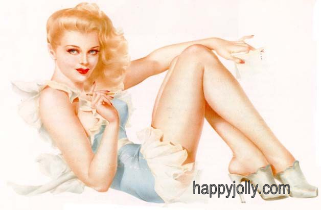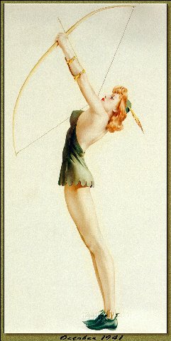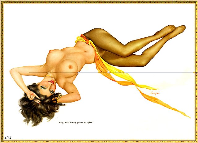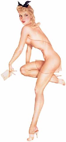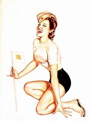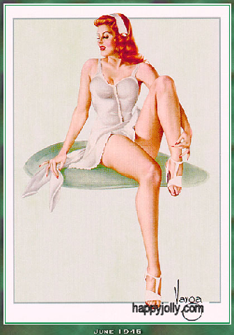 Pinups painted by: Gil Elvgren, Earl Macpherson, Earl Moran, Alberto Vargas, Edward Runci, Art Frahm, Donald Rust, Robert Skemp, Bill Medcalf. Zoe Mozert