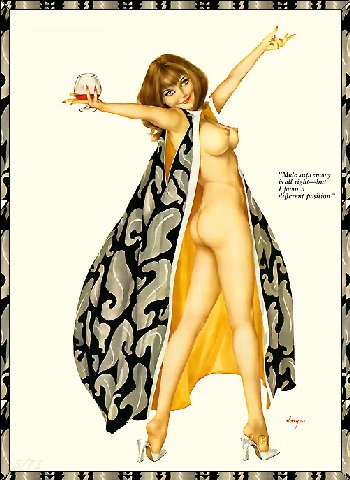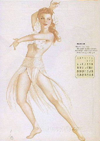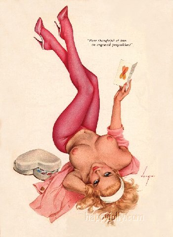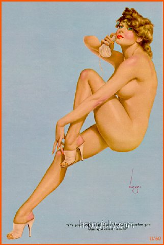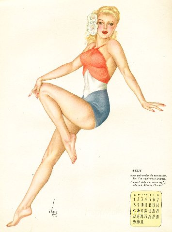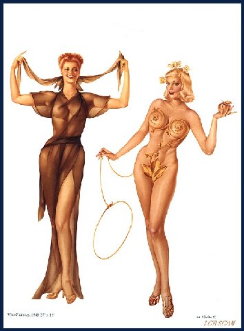 Pinups painted by: Gil Elvgren, Earl Macpherson, Earl Moran, Alberto Vargas, Edward Runci, Art Frahm, Donald Rust, Robert Skemp, Bill Medcalf. Zoe Mozert