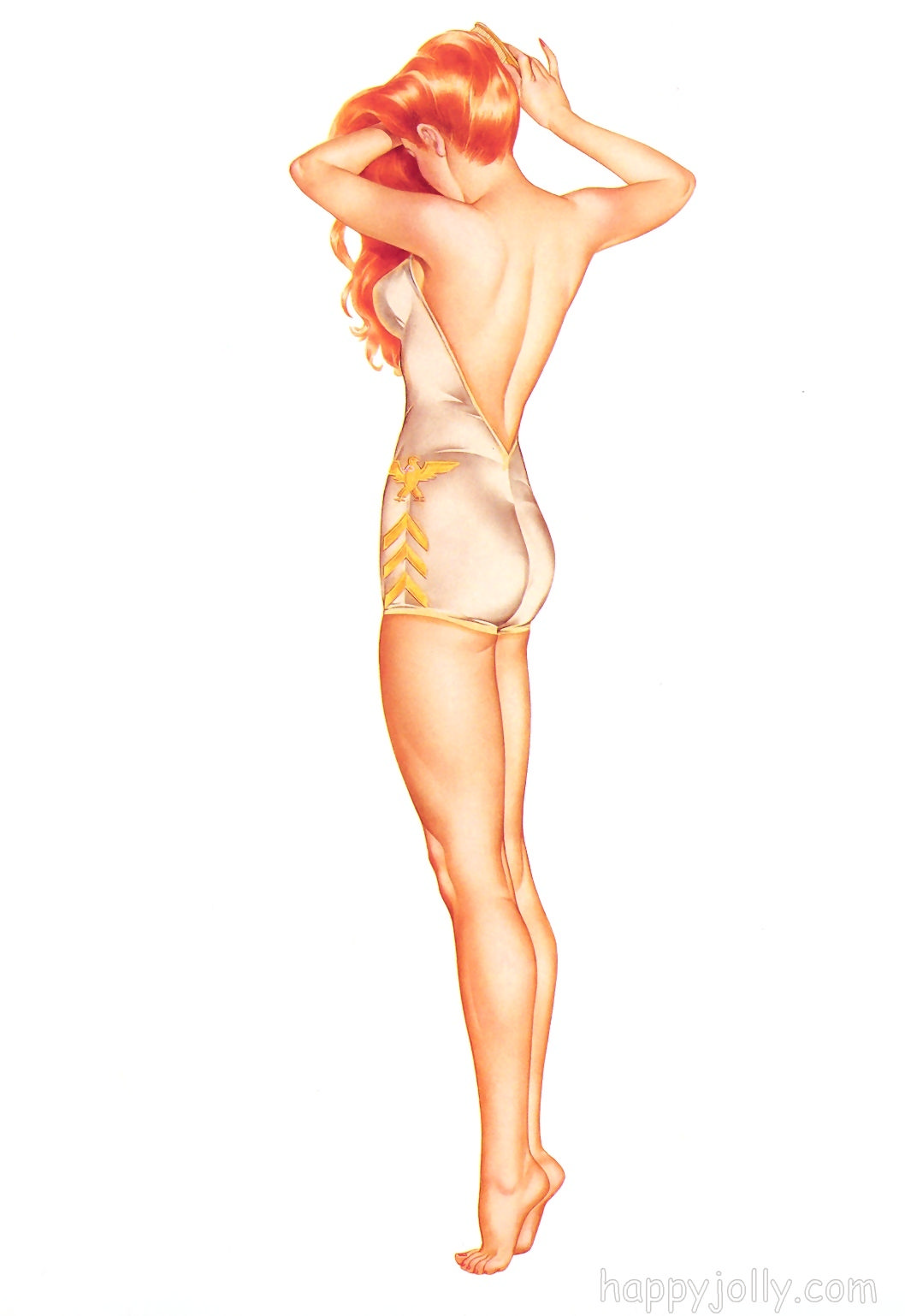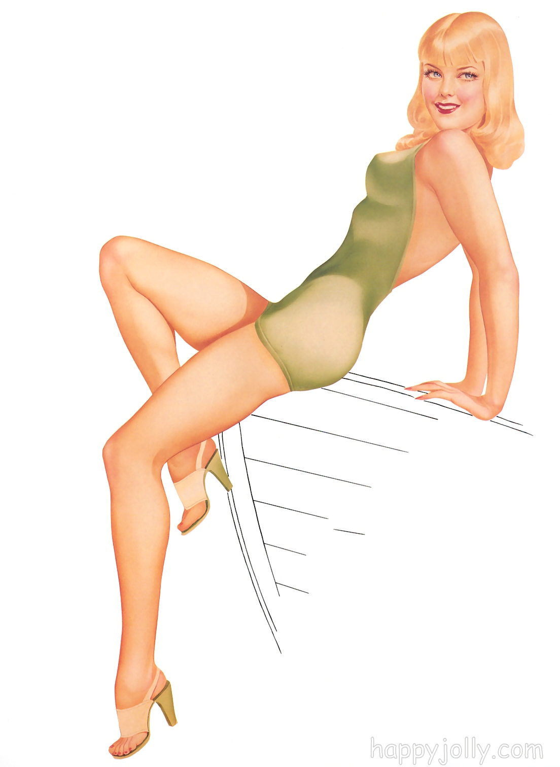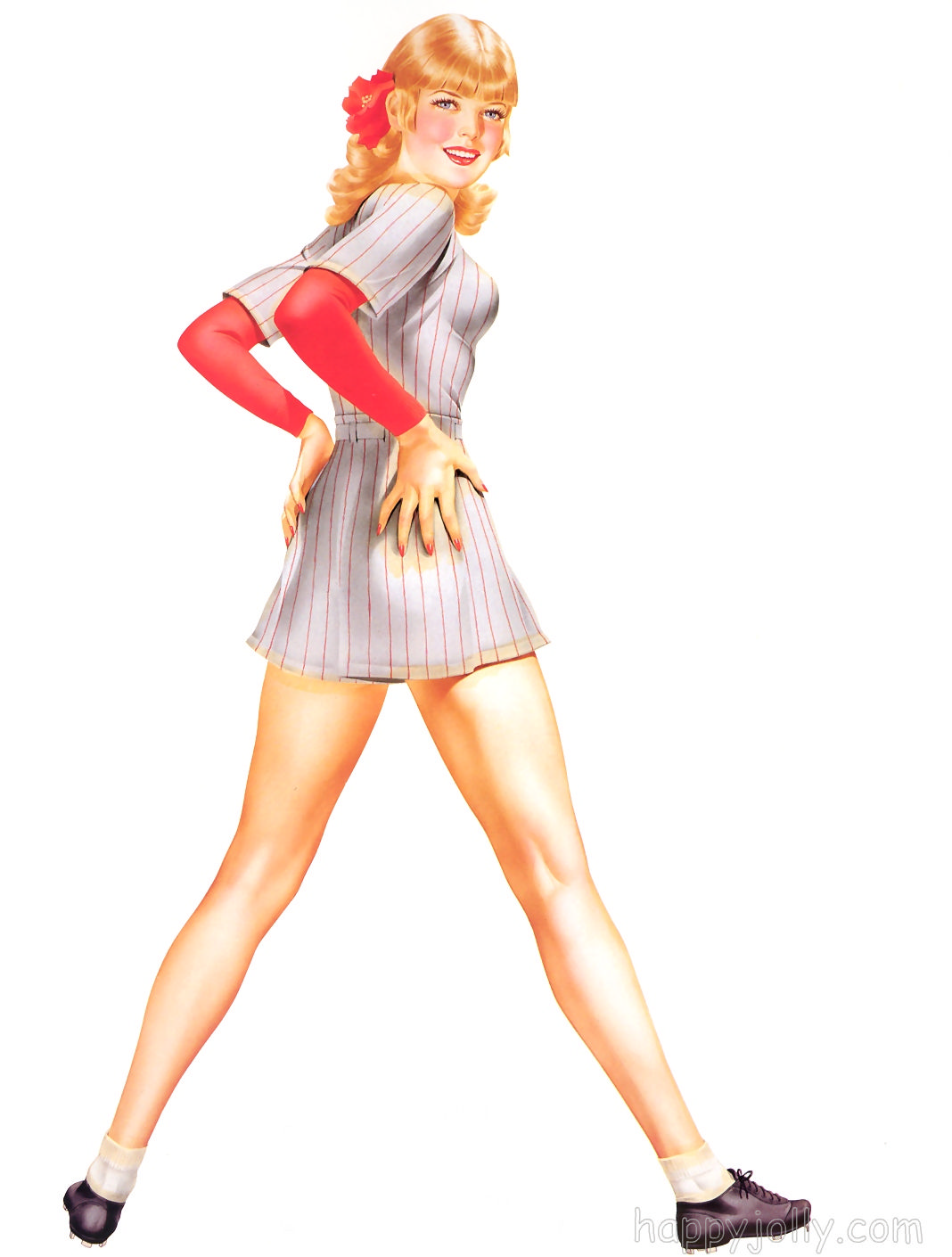 Pinups painted by: Gil Elvgren, Earl Macpherson, Earl Moran, Alberto Vargas, Edward Runci, Art Frahm, Donald Rust, Robert Skemp, Bill Medcalf. Zoe Mozert