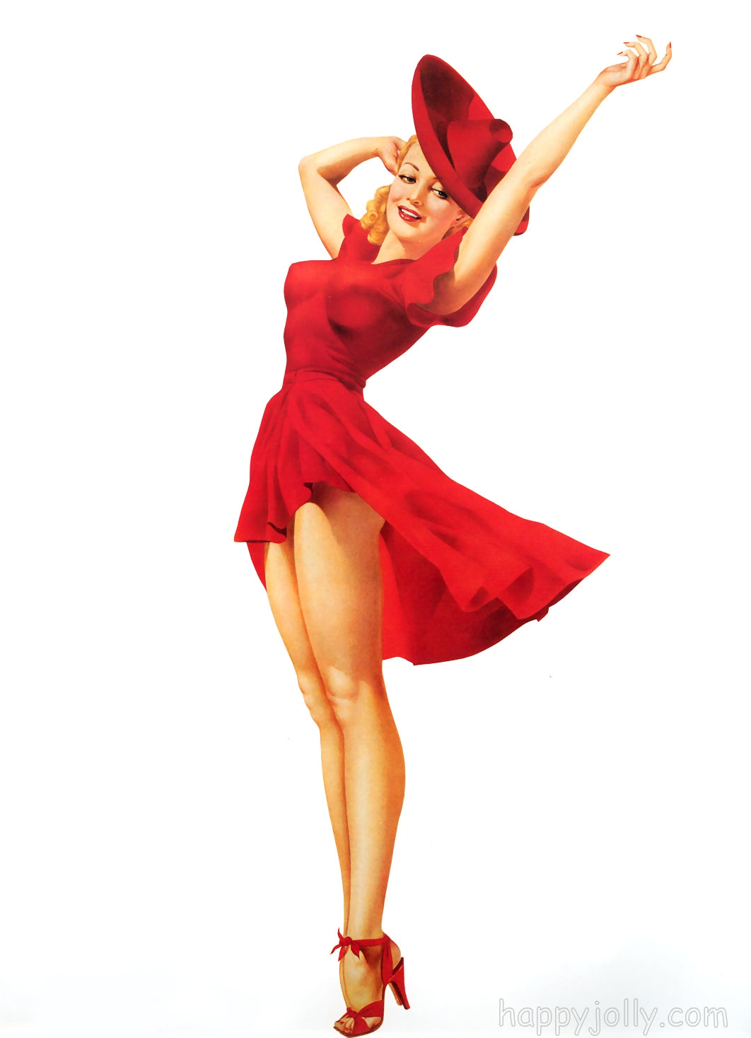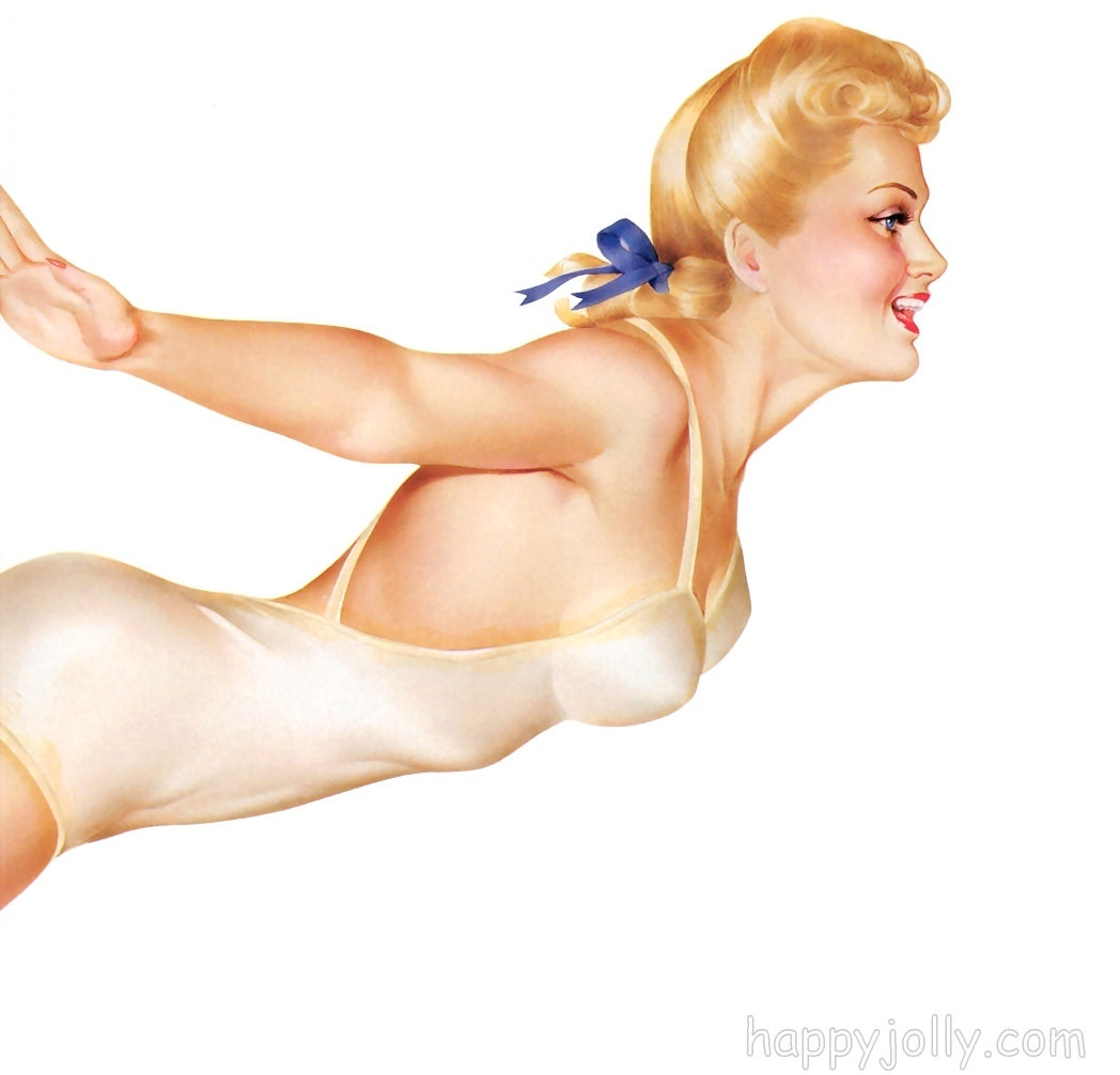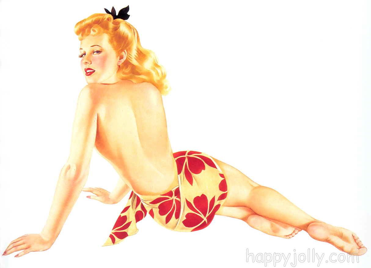 Pinups painted by: Gil Elvgren, Earl Macpherson, Earl Moran, Alberto Vargas, Edward Runci, Art Frahm, Donald Rust, Robert Skemp, Bill Medcalf. Zoe Mozert