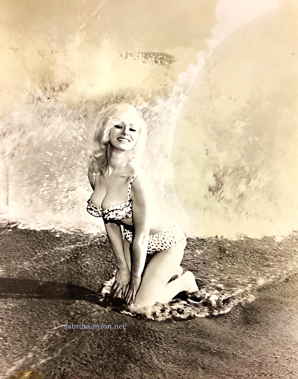 4 August 2025 It seems to be Sabrinaseason. Lots of new discoveries. Like this, from 4 February 1957. Hulton Archive wanted $US475 for a medium sized picture. The large version cost $650. OK... Sorry for them.And Sabrina was really 3 August 2025 Some lovely new pictures of our Sabrina 2 August 2025 Sabrina appeared on the US TV's Steve Allen Show on 9 March 1958 See the pix of her rehearsals. 1 August 2025 Added over a dozen new pictures of a Cleaner Sabrina with a towel in the shower. I knew you needed this. 30 July 2025 Added 9 new pix of Sabrina in a hotel room in 1958 30 July 2025 Four pix of Sabby by the pool in a beehive, 1962 28 July 2025 Updated the Sabrina Doorway picture page a smidge. Hey: new Sabrinastuff is hard to find, and it seems nobody cares anyway. 21 July 2025 A new article! From Australasian Post, 1959, Sabrina becomes an Antarctic landmark! 11 July 2025 Three recent additions to the Sabrina Toys photo page 25 June 2025 Updated the vital Sabrina In Bathers page to include more pix of her poolside in 1964 23 June 2025 Sabrina in 1960 targets those critics who say she is a falling star. Sabrina - still out in front - Australasian Post, 10 March 1960 18 June 2025 To celebrate the 25th anniverary of the Sabrina Site, I have added a new picture page wherein Sabby poses with stuffed toys. Why? When? Where? Sabby only knows. 16 June 2025 Happy 25th birthday to the Encyclopædia Sabrina 14 June 2025 Encyclopædia Sabrina soon celebrates its 25th anniversary on the 16th. It's not too late to organise street parties in Stockport and other major city centres. New York is already booked - marines are on site to handle crowd control. London says they are nearly ready. Melbourne is in progress. 30 May 2025 We have more (but not all) of a long-sought article - Sabrina - A Cult Takes To Culture. 29 May 2025 A new magazine article from 1959! Queen Sabrina, from Modern Man Yearbook.