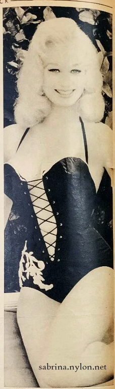 16 February 2026 Added a new ad for Sabrina's seductive short movie, "At Home With Sabrina" 8 February 2026 Upgraded a covergirl picture. Click it to see more. 4 February 2026 In 1998, June Whitfield remembers Sabrina from her Arthur Askey TV days. 2 February 2026 Sabrina judges the 1956 Miss Great Britain beauty competition. 29 January 2026 Hear Arthur Askey discuss Sabrina as he reads from his autobiography "Before Your Very Eyes" And read it on the Askey Bio Book page. 28 January 2026 A charming pic of a more mature Sabrina in her 1964 Easter bonnet. And a memory of Sabrina from Tom Latham on Facebook - delivering meat to Sabby in Liverpool. 26 January 2026 A nice new pic of Sabrina and Steve. See more pix of Sabby and Stevie Cochran. 21 January 2026 A new magazine! Confidential 1962, in which pioneer transsexual actress and performer Coccinelle recalls Sabrina. 20 January 2026 Just when I started to think that the supply of Sabrinastuff had finally been exhausted, new delights appear. Here is a very young Sabrina in 1956 with a ball in one of her first photoshoots. See more of young Sabrina. 13 January 2026 Click the thumbnail to see Sabrina's nearly-wordless TV contribution to Before Your Very Eyes on Youtube. 12 January 2026 Arthur Askey briefly mentions Sabrina on the Ken Dodd Laughter Show 11 January 2026 The first news for 2026. Thanks to Jedwar on we have upgraded Goodnight With Sabrina to an unwatermarked 1080p version with sexy music :-) Download it. Or see it on Youtube. Thanks, Lord Jedwar! |