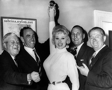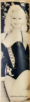 12 April 2022 - A new addition to the Turtleneck Collection 12 April 2022 - More juicy news on the Sabrina bust-improving Cream fraud of the 1960s. 11 April 2022 - A brand new picture! They don't come around too often, after 22 years of searching. And this beauty... You can tell she's in love with that dress. 9 April 2022 - Adding to the spectacular scene in 1956 when Sabrina crushed a champagne flute in her Mighty SabrinaFist, |