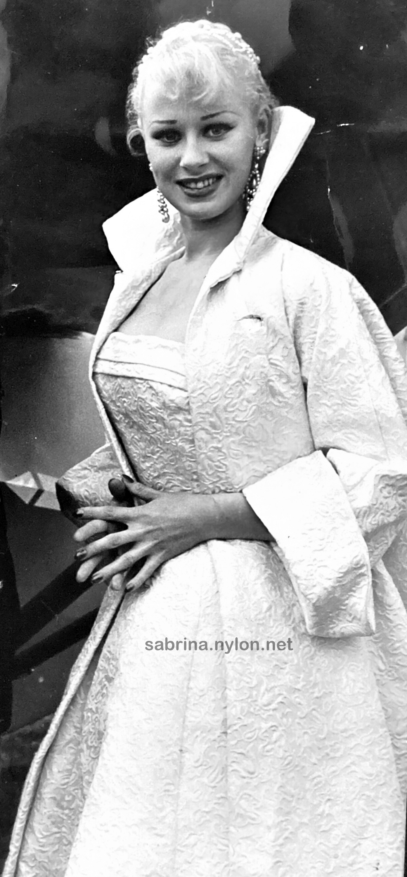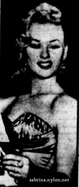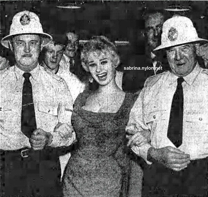 31 December 2024 Lord Steve M has sent a tantalising picture of a movie of the book Cinderella Nightingale that was meant to star Carol Lesley. Sadly, the movie, Midnight Cinderella, was never made due to Sabrina's libel suit against the book's author and publishers. 30 December 2024 Good news: the restored version of Sabrina's The Ice House movie is still in production. 6 December 2024 So, it's 1981 and you're heading home on the tube doing the Evening Times crossword... 6 November 2024 Finally got around to compiling a Steve Cochran page, cobbled together from various sources to which I am indebted. It needs a lot of editing, but it is a start. 4 November 2024 Finally, you can enjoy the full-length versions of Sabrina's Movies, thanks to Cloud Storage, which alleviates the demands on my limited site storage capacity. Ten movies in varying levels of video quality - just for you :-) This is the direct link to the complete Sabrina movies. 27 October 2024 Upgraded some pix of Sabrina in deep philosophical thought in February 1956 21 October 2024 I can't believe I just spent two hours curating my pictures and pages relating to Sabrina's dog, Shane. I go to add one picture and discover three site errors. While fixing those, I discover some duplicate images. Fixing those makes me realise one image has many related pix, requiring a new miniseries section. After updating the miniseries page, I realise there are so many pix that it deserves its own dedicated pix page... It never ends (fortunately). 17 October 2024 At long last, I think I've nearly removed all VIP links to enhanced downloads, so all links go to the best picture version I have. It has only taken a couple of months. 13 October 2024 Meanwhile, I'm still replacing VIP images with supersized public versions. 4 October 2024 I have found several new articles about Sabrina's club appearances in the USA in 1961 30 September 2024 A rare new article. Found accidentally when looking for pictures, this article from 1968 describes how Sabrina didn't impress Howard Marks in about 1954. 21 September 2024 A little new addition. Sabrina with Steve Cochran publicising his Beat Generation movie. 14 September 2024 In case you were wondering, things have not been calm at Sabrina Encyclopædia. I have been slowly but surely converting VIP (BOOBS) images to regular large image downloads. This will take some time. There are about 84 left to do... 4 September 2024 Sabrina leans forward in (what I call) her claw dress. 16 August 2024 A momentous moment in the long history of the Sabrina site, but it will not mean anything to anyone else. Just let me know of broken picture links. But it was a historic day. An historic day? Boring myself again. For the record, there are now 3,023 pictures of Sabrina on the site. Yay. Here is one at random.