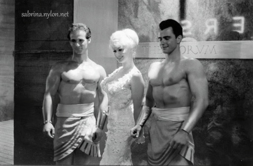 10 June 2023 Found on eBay, another of the mysterious probably-Sabrina nudes that defy explanation in spite of considerable research. Were they taken in the same photoshoot as the infamous sixteen-year-old nudes? Time will tell. Read up on the saucy nude Sabrina incident. Find out out the nude playing cards. 31 May 2023 Believe it or not, we can still find new Sabrina photos. I knew there were a lot, but this research project is going FAR beyond I could have imagined when it began in 2000. Sabrina and strong-man Tommy Yeardye interrupted by a gorilla in the Stork Room, London, 1959. 21 May 2023 Thanks to the Youtube efforts of Christian Blatter, we have a restored rendition of Sabrina singing "I Would if I Could" from her masterpiece, "Satan in High Heels"