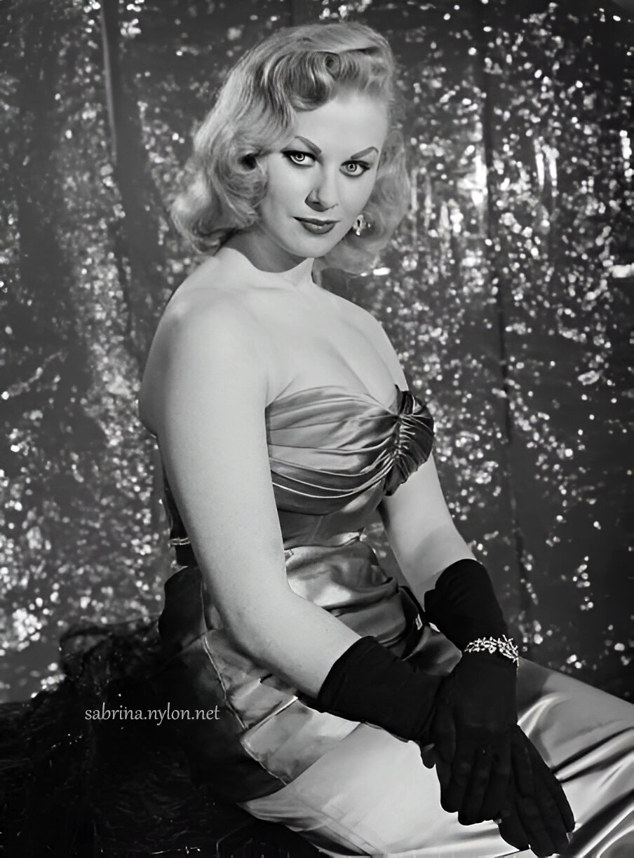 10 May 2022 A delightful new picture of Sabrina in (what I call) her seductive Feather Dress. She stares at everyman of the 1950s and they knew what she wanted.