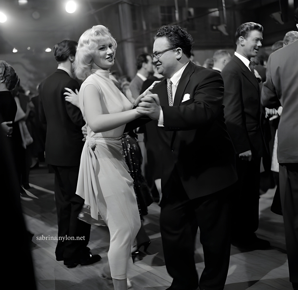 We have a Sabrina Mystery! A 1956 contract between notorious nude photographer Russell Gay and Sabrina regarding pictures of her to be used in a book to be released. Remember when Sabrina appeared on stage in plays? 16 March 2024 English glamour model and actress Sabrina in rehearsal for her appearance with Arthur Askey on 'Sunday Night at the Palladium' in London, UK, 18th March 1963. Greetings from 1955. A new picture from the little Wall Collection. British actress Sabrina stands in a street surrounded by male admirers while on a visit to the London Stock Exchange, London, April 29th, 1958. Actor and comedian Harry Secombe (1921 - 2001) dancing with model Sabrina during a BBC Television Tea Party held at the Television Centre in White City, London, September 26th 1955. The party was given by Cecil Madden, assistant controller of the BBC, to inaugurate the new extra hour of afternoon TV. Due to the large number of guests, the event was filmed in the TV Centre's scenery dock. Sabrina gatecrashes the Ascot Races in 1957