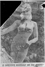 5 November 2023 Another new magazine, from 1958. The Weekend wonders if Sabrina has done the wrong thing in choosing to come to Australia. Click the pic to view the article 3 November 2023 A new magazine! From Pix in 1966, one of Sabrina's last appearances - but only to publicise Australian singer Barry O'Dowd. 7 October 2023 Shocking news - today I learnt from Bryce W what became of Sabrina's scrapbooks and the rest of her legacy. It involves arson, drugs, deaths, and a manhunt - a tale worthy of a Hollywood movie - but it's not a happy one. 3 September 2023 Yes, things have cooled down at Encyclopedia Sabrina, but the hunt continues. This adds to to knowledge of Sabrina's visit to German in February 1957 with Steve Cochran.