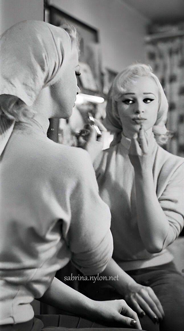 Sabrina in full makeup I could have sworn I had this pic already, but I can't find it. If you can find duplicates, please let me know 22 August 2022 At the Albany Club, London, on 17 February 1956, Sabrina celebrates her first year in show business. Sabrina has a cheeky sleep-in