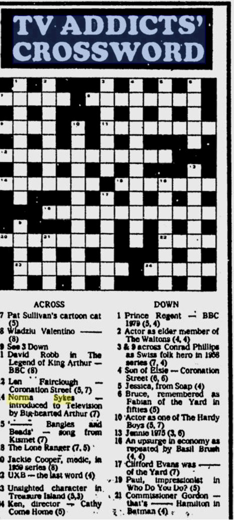 Yes. She's 16-down: stage name. 4 April 2023 An undated (but probably 1977) and unsourced newspaper article (with some missing text) wonders if Sabrina's marriage is on the rocks. 24 February 2023 For some reason I didn't have the larger view of this thumbnail... Now I do! 19 February 2023 A rare find - an undiscovered newspaper article from 1958. The Australian Jewish Herald reports that...