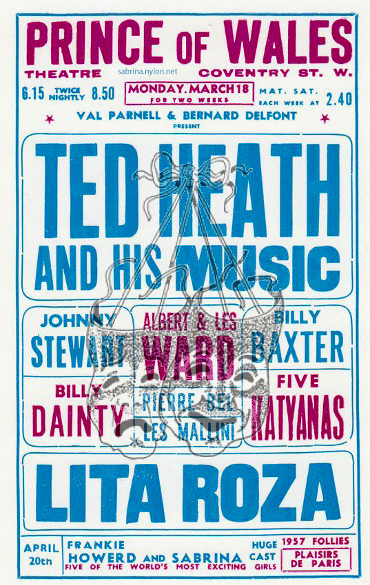 | Palace Theatre 18 July 1955, appearing as "The Glamorous Sabrina from the TV series 'Before Your Very Eyes' |