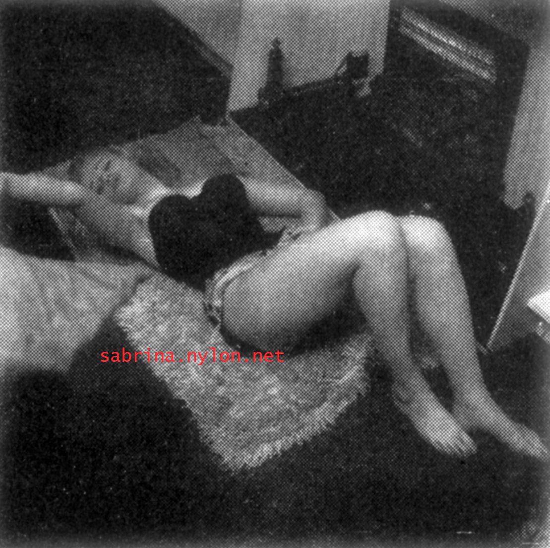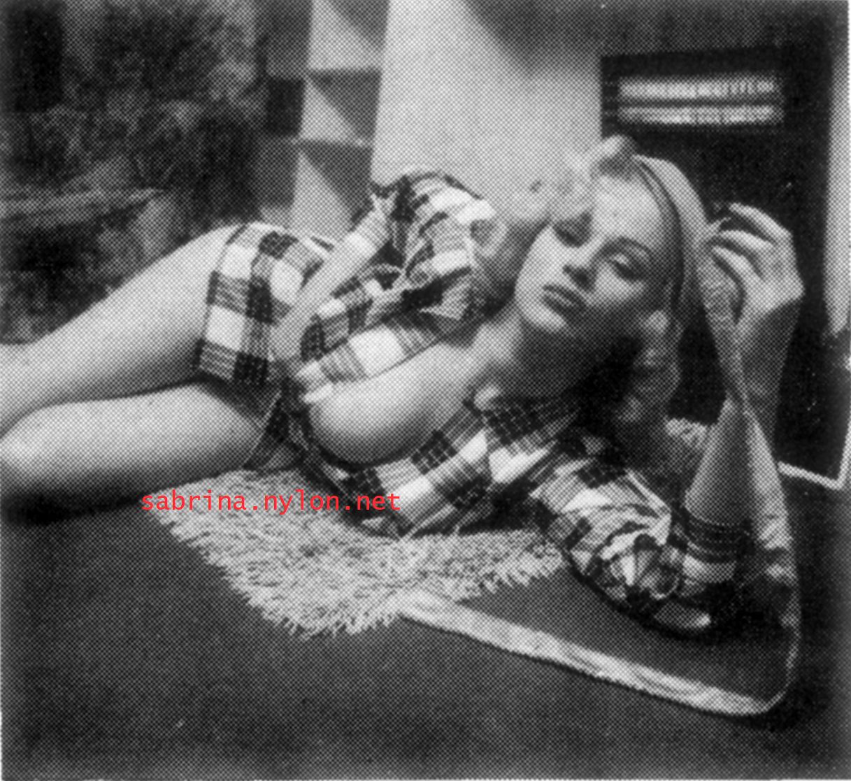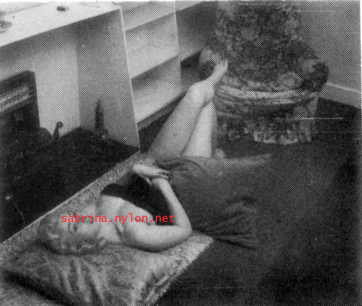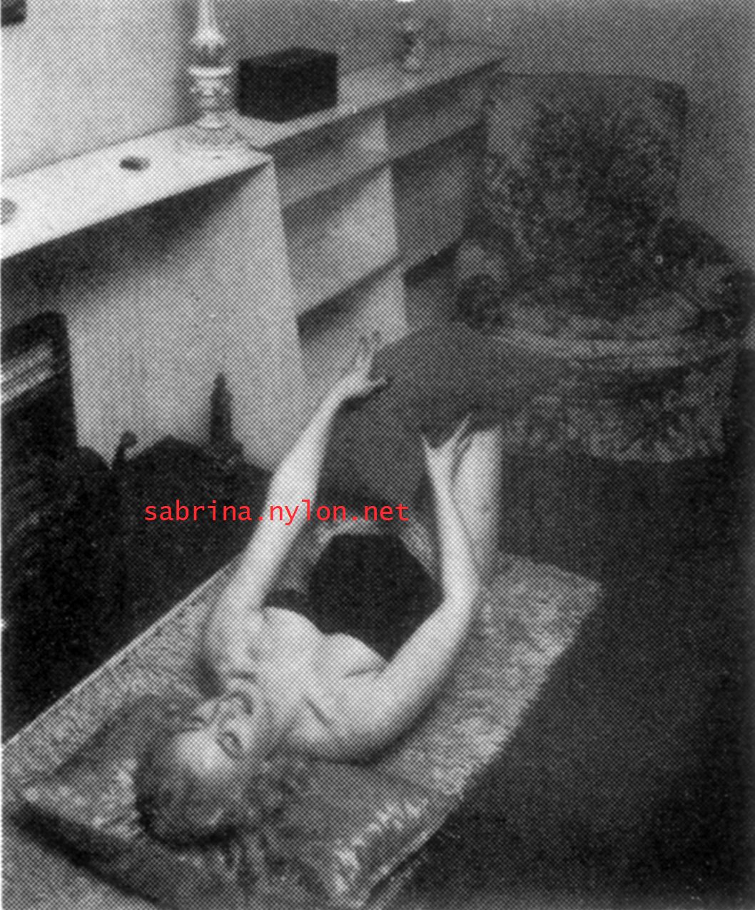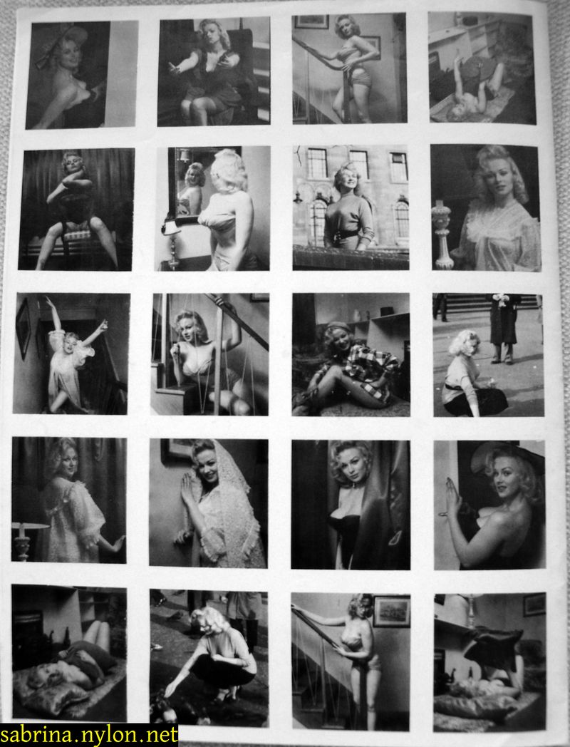 | Dear reader. Let me take you back to a strange time - the 1950s - probably in London. A place and time of fog, The Times , stiff upper lips, Oxford Commas, and post-war privations. A place where freshly-demobbed men such as Private Parts, Corporal Pleasure, Major Lust and General Frustration wandered the cobbled streets in search of colour, excitement and unrationed titillation. A certain gentleman (for, surely, a lady is unlikely to have been the instigator of the curiosity I am about to disclose) was smitten by a lass of comely proportions whom he had seen on the television programme called "Before Your Very Eyes". She was mysteriously named "Sabrina" and her three-dimensional charms inspired this chap to devise, produce and distribute a publication most singular and mysterious. It bore but a single word betwixt its inaugural and ultimate leaves: SABRINA . The rest is silence. Whence, when and wherefore it was commissioned is unknown. Its copyright status is questionable. Many of the photographs are taken from known photoshoots such as (what I call) the Shagpile and Walkabout series, but seem to have been rejected by newspaper or magazine editors/publishers. Telltale examples are those where Sabrina is facing away from the camera obscura, or the photographic quality (e.g. exposure or framing) is deficient. Photoshopping was needed to improve the quality of the scans of the tiny images, but nothing was omitted. Perhaps the proprietor of this publication purloined the pictures from his place of employ - perchance from a photograher, publisher or printer. But what is germane at this juncture is that the journal exists and I have it. And now, so do you*... its multitudinous pictures and its single word: Sabrina. *If you care to purchase this mysterious magazine, please get in touch . Jump to the categorised images . |