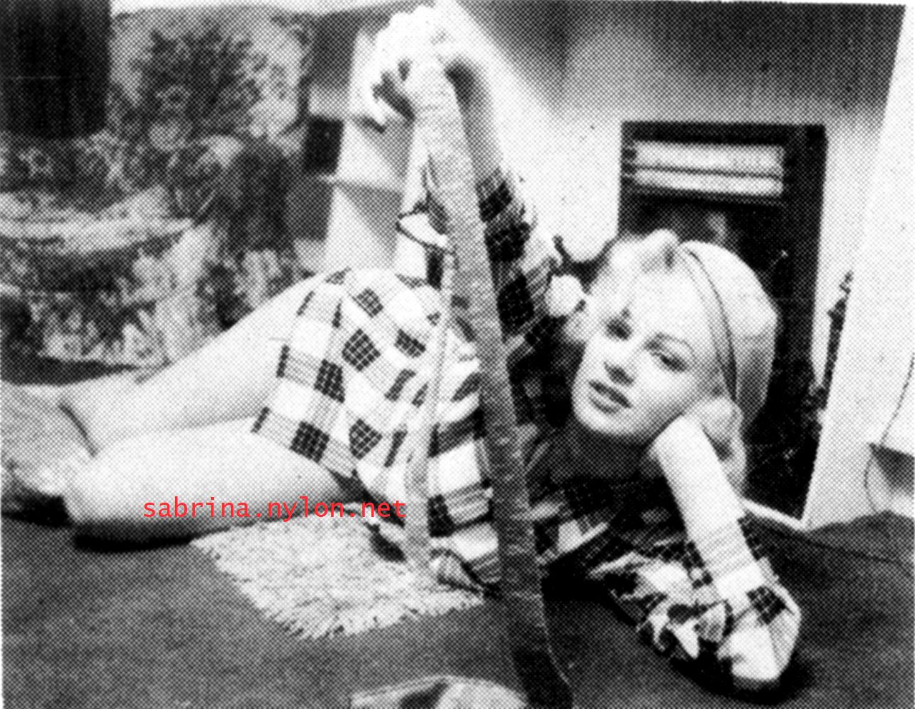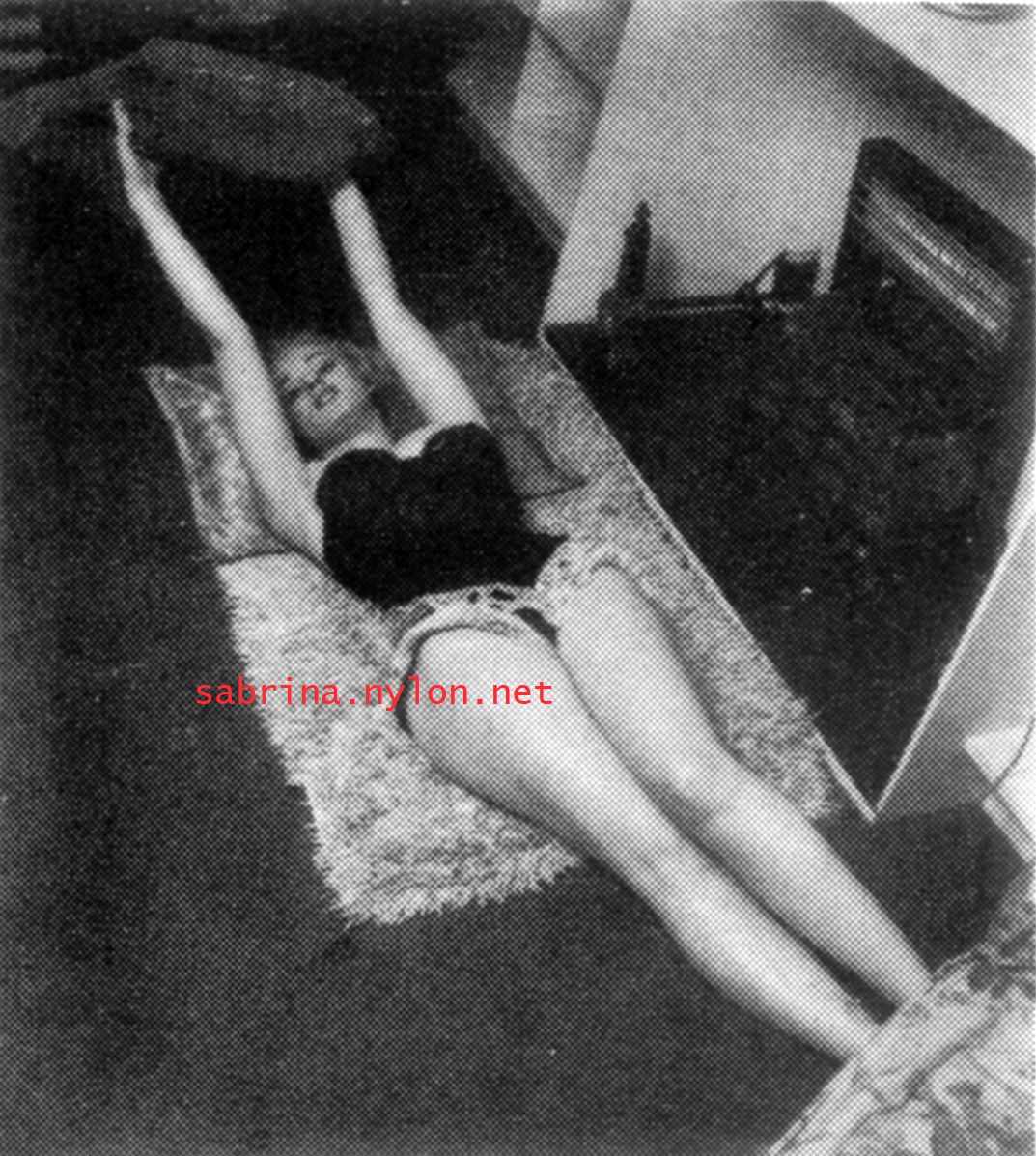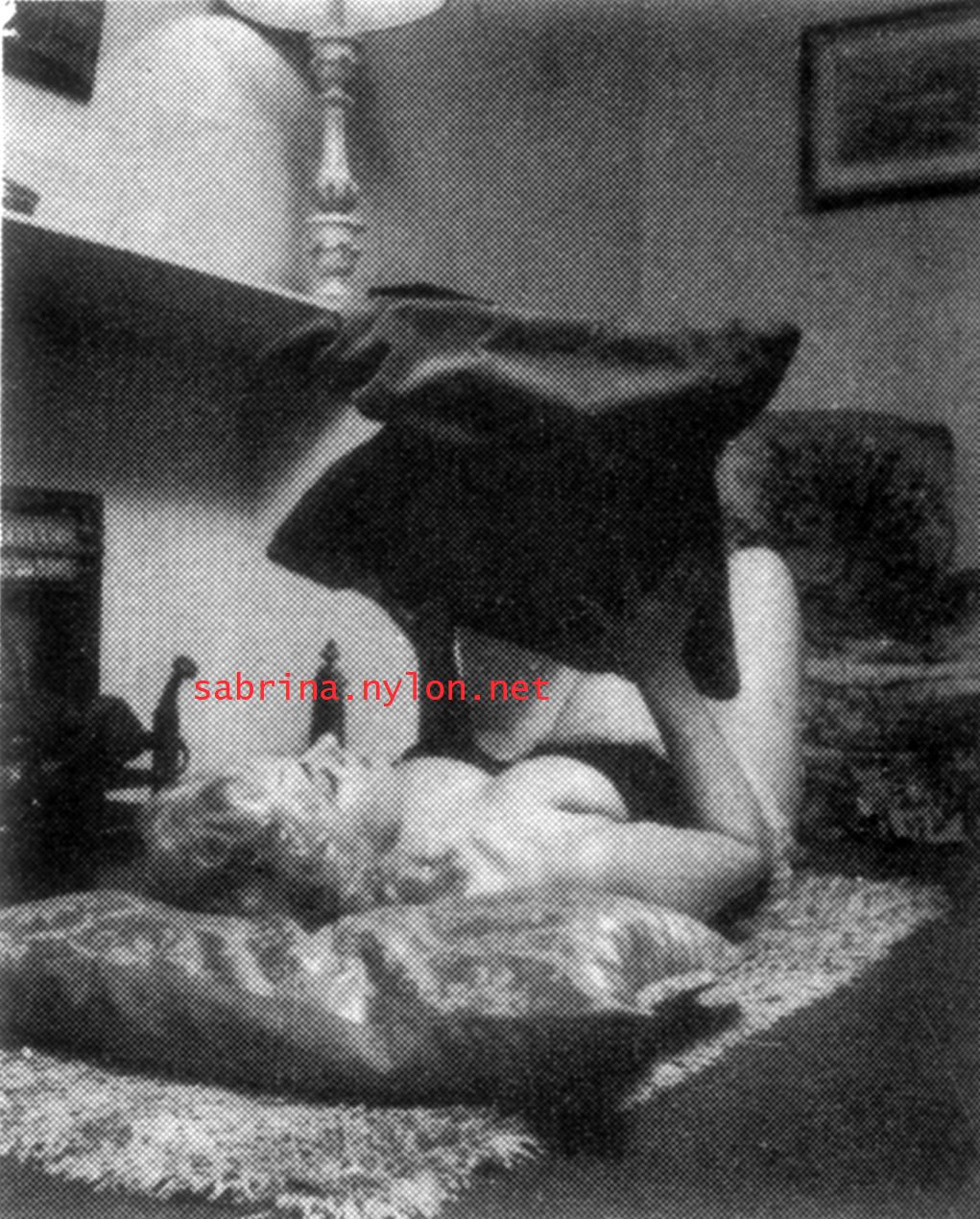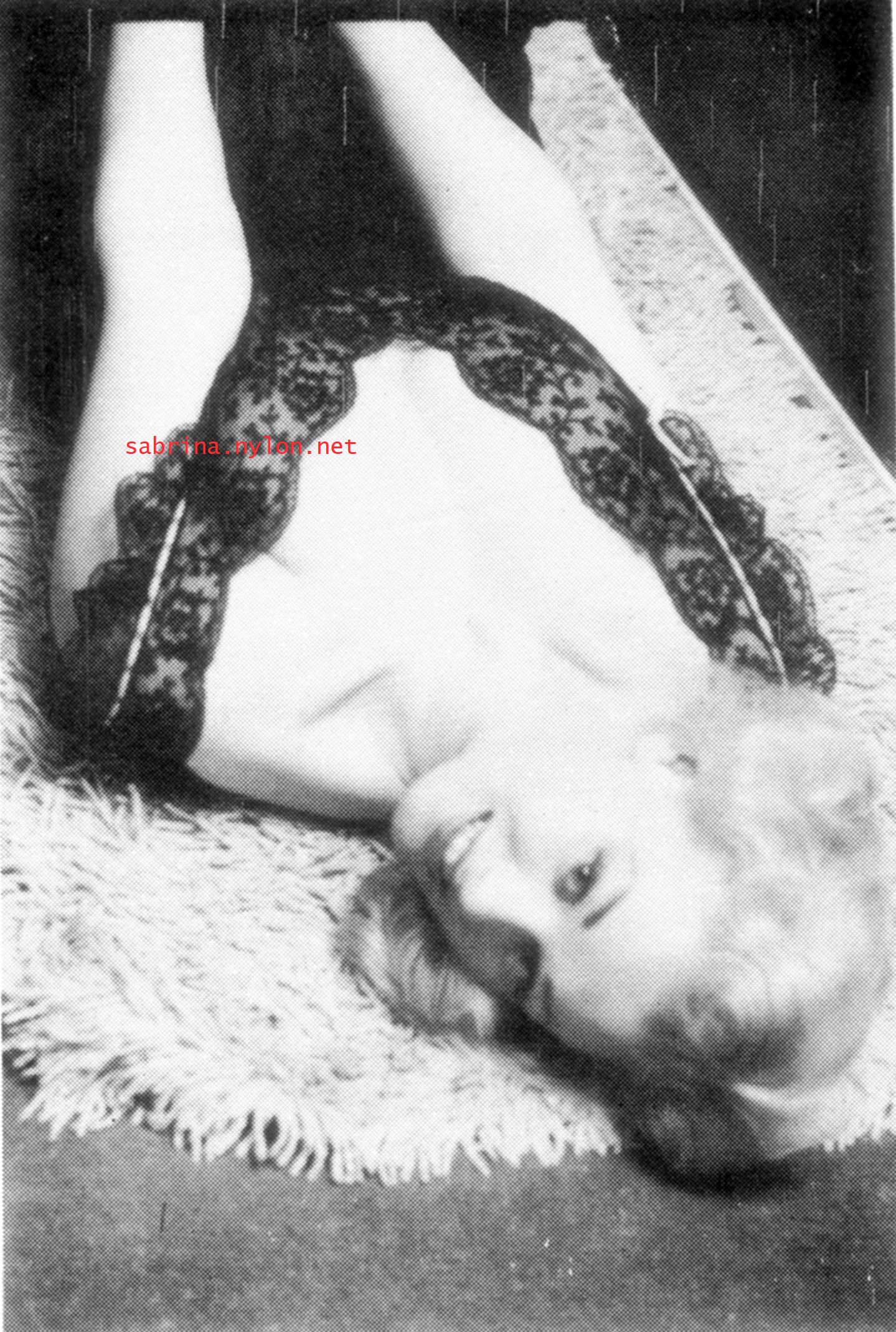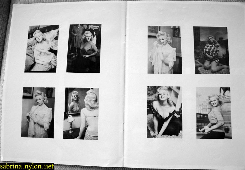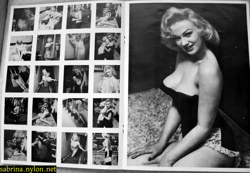 | Dear reader. Let me take you back to a strange time - the 1950s - probably in London. A place and time of fog, The Times , stiff upper lips, Oxford Commas, and post-war privations. A place where freshly-demobbed men such as Private Parts, Corporal Pleasure, Major Lust and General Frustration wandered the cobbled streets in search of colour, excitement and unrationed titillation. A certain gentleman (for, surely, a lady is unlikely to have been the instigator of the curiosity I am about to disclose) was smitten by a lass of comely proportions whom he had seen on the television programme called "Before Your Very Eyes". She was mysteriously named "Sabrina" and her three-dimensional charms inspired this chap to devise, produce and distribute a publication most singular and mysterious. It bore but a single word betwixt its inaugural and ultimate leaves: SABRINA . The rest is silence. Whence, when and wherefore it was commissioned is unknown. Its copyright status is questionable. Many of the photographs are taken from known photoshoots such as (what I call) the Shagpile and Walkabout series, but seem to have been rejected by newspaper or magazine editors/publishers. Telltale examples are those where Sabrina is facing away from the camera obscura, or the photographic quality (e.g. exposure or framing) is deficient. Photoshopping was needed to improve the quality of the scans of the tiny images, but nothing was omitted. Perhaps the proprietor of this publication purloined the pictures from his place of employ - perchance from a photograher, publisher or printer. But what is germane at this juncture is that the journal exists and I have it. And now, so do you*... its multitudinous pictures and its single word: Sabrina. *If you care to purchase this mysterious magazine, please get in touch . Jump to the categorised images . |