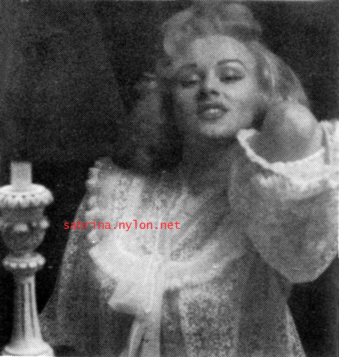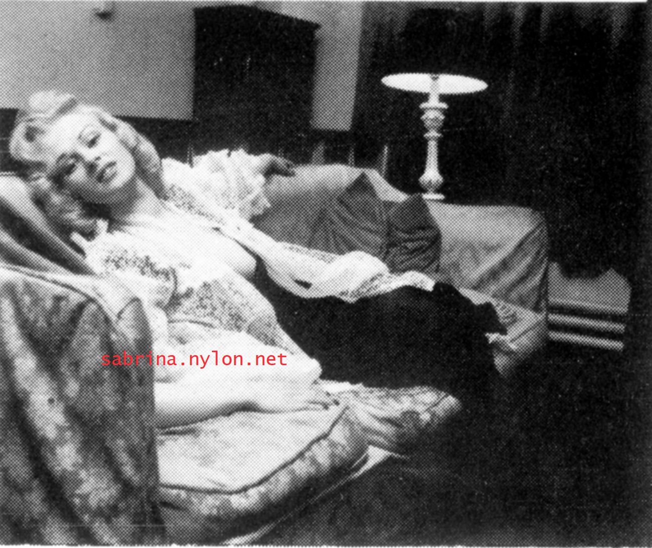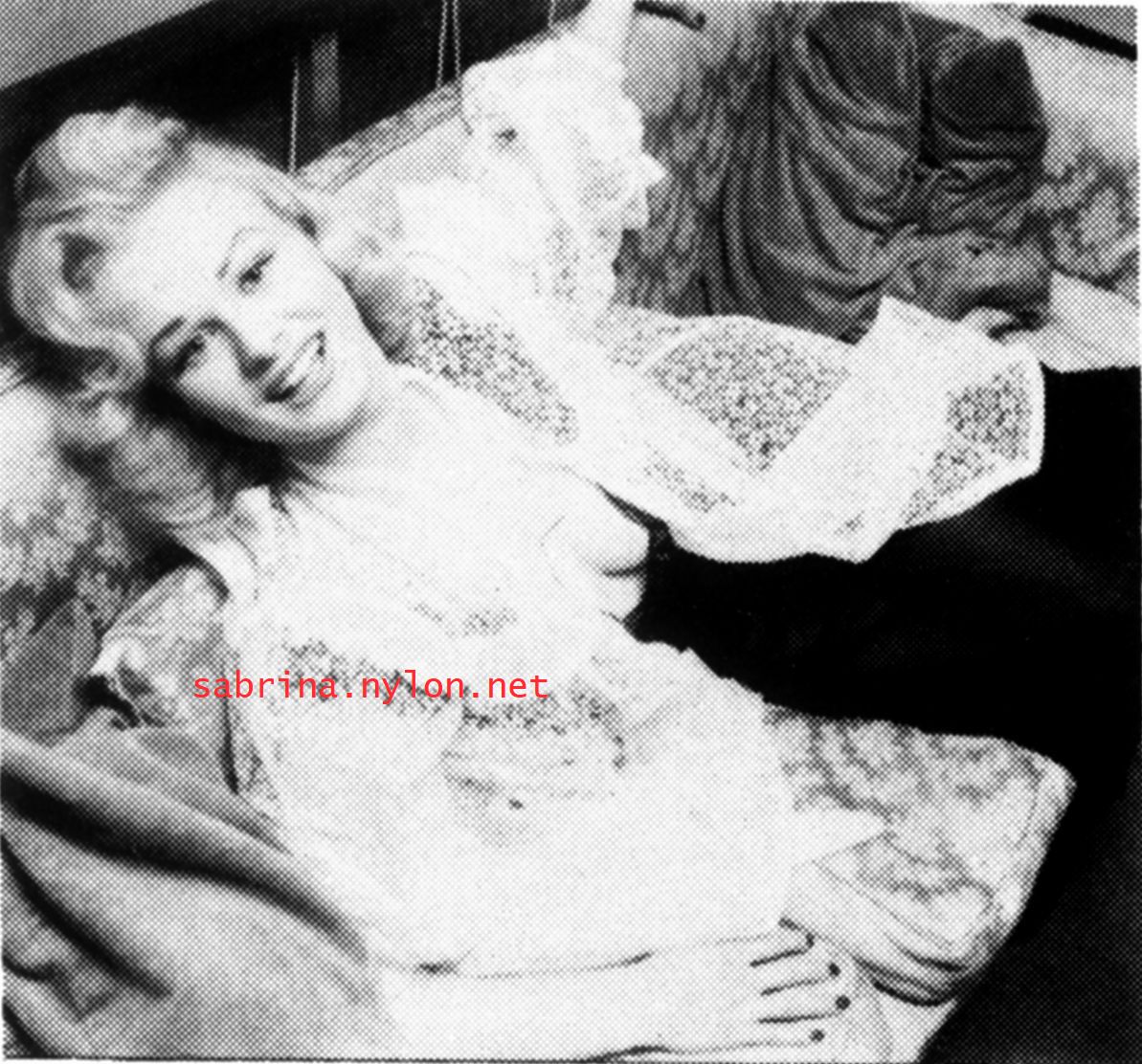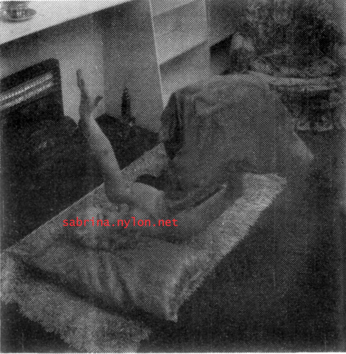 | Dear reader. Let me take you back to a strange time - the 1950s - probably in London. A place and time of fog, The Times , stiff upper lips, Oxford Commas, and post-war privations. A place where freshly-demobbed men such as Private Parts, Corporal Pleasure, Major Lust and General Frustration wandered the cobbled streets in search of colour, excitement and unrationed titillation. A certain gentleman (for, surely, a lady is unlikely to have been the instigator of the curiosity I am about to disclose) was smitten by a lass of comely proportions whom he had seen on the television programme called "Before Your Very Eyes". She was mysteriously named "Sabrina" and her three-dimensional charms inspired this chap to devise, produce and distribute a publication most singular and mysterious. It bore but a single word betwixt its inaugural and ultimate leaves: SABRINA . The rest is silence. Whence, when and wherefore it was commissioned is unknown. Its copyright status is questionable. Many of the photographs are taken from known photoshoots such as (what I call) the Shagpile and Walkabout series, but seem to have been rejected by newspaper or magazine editors/publishers. Telltale examples are those where Sabrina is facing away from the camera obscura, or the photographic quality (e.g. exposure or framing) is deficient. Photoshopping was needed to improve the quality of the scans of the tiny images, but nothing was omitted. Perhaps the proprietor of this publication purloined the pictures from his place of employ - perchance from a photograher, publisher or printer. But what is germane at this juncture is that the journal exists and I have it. And now, so do you*... its multitudinous pictures and its single word: Sabrina. *If you care to purchase this mysterious magazine, please get in touch . Jump to the categorised images . |