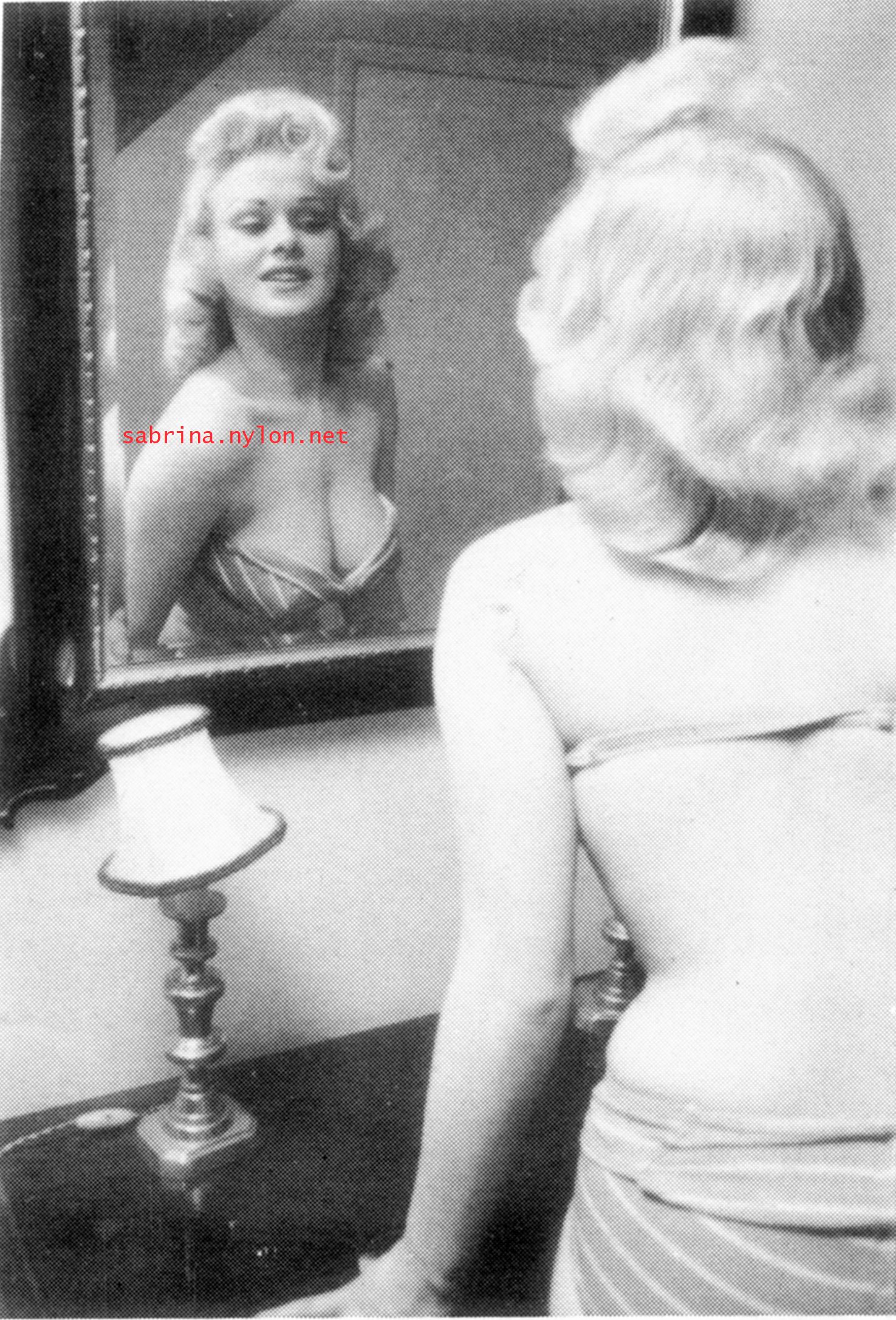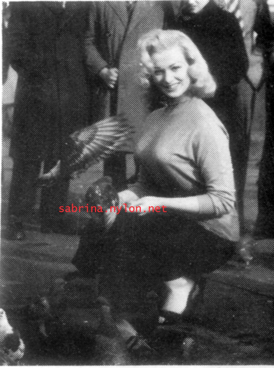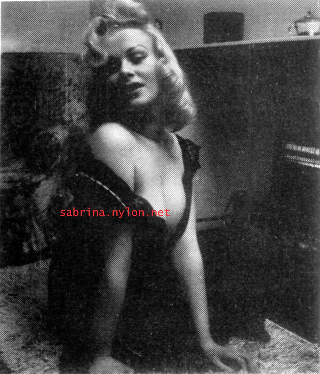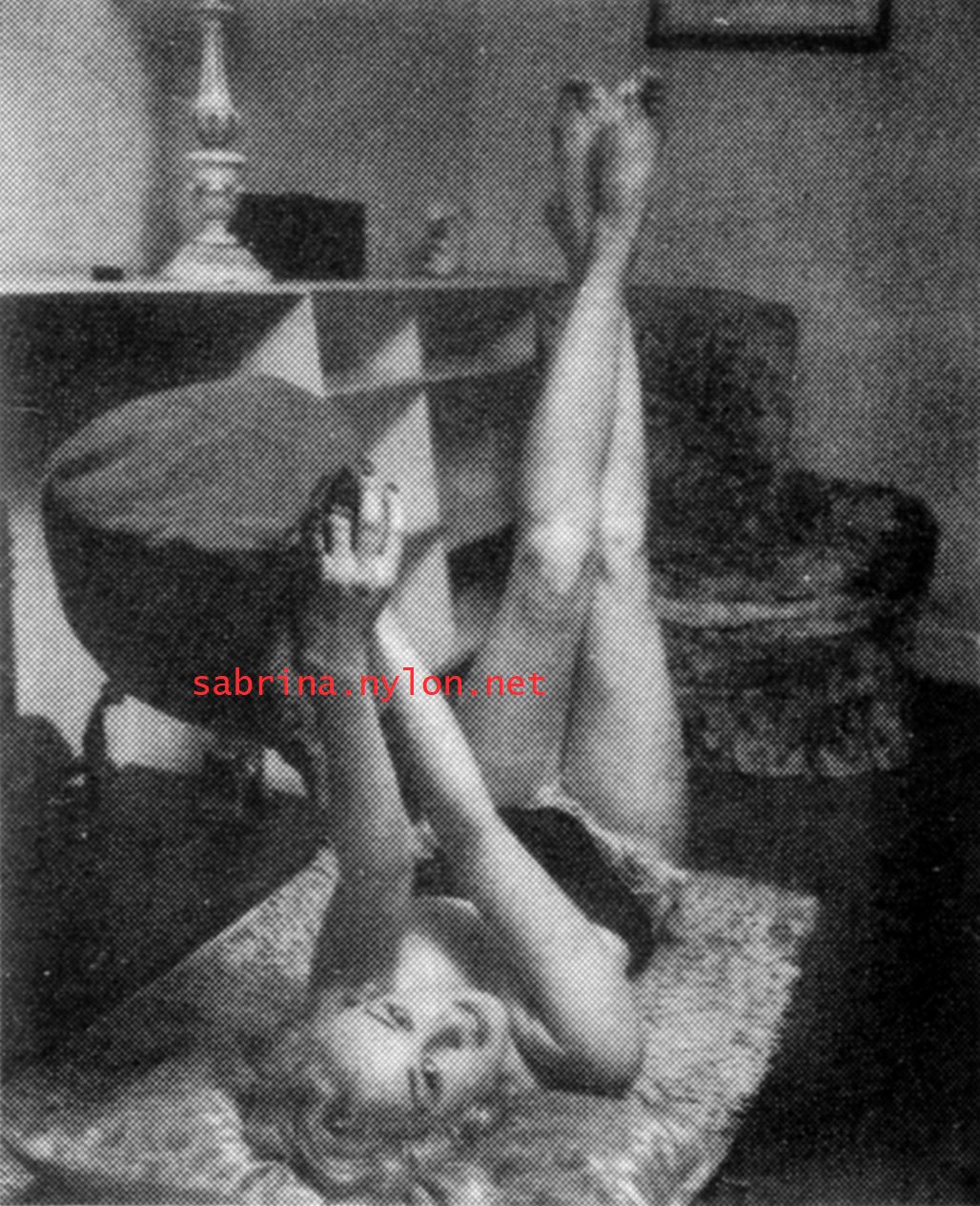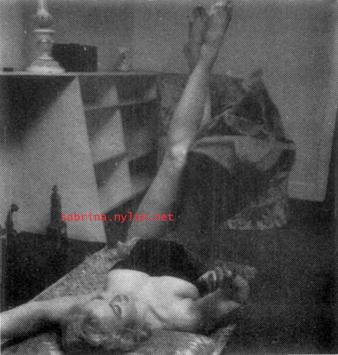| Dear reader. Let me take you back to a strange time - the 1950s - probably in London. A place and time of fog, The Times , stiff upper lips, Oxford Commas, and post-war privations. A place where freshly-demobbed men such as Private Parts, Corporal Pleasure, Major Lust and General Frustration wandered the cobbled streets in search of colour, excitement and unrationed titillation. A certain gentleman (for, surely, a lady is unlikely to have been the instigator of the curiosity I am about to disclose) was smitten by a lass of comely proportions whom he had seen on the television programme called "Before Your Very Eyes". She was mysteriously named "Sabrina" and her three-dimensional charms inspired this chap to devise, produce and distribute a publication most singular and mysterious. It bore but a single word betwixt its inaugural and ultimate leaves: SABRINA . The rest is silence. Whence, when and wherefore it was commissioned is unknown. Its copyright status is questionable. Many of the photographs are taken from known photoshoots such as (what I call) the Shagpile and Walkabout series, but seem to have been rejected by newspaper or magazine editors/publishers. Telltale examples are those where Sabrina is facing away from the camera obscura, or the photographic quality (e.g. exposure or framing) is deficient. Photoshopping was needed to improve the quality of the scans of the tiny images, but nothing was omitted. Perhaps the proprietor of this publication purloined the pictures from his place of employ - perchance from a photograher, publisher or printer. But what is germane at this juncture is that the journal exists and I have it. And now, so do you*... its multitudinous pictures and its single word: Sabrina. *If you care to purchase this mysterious magazine, please get in touch . Jump to the categorised images . |