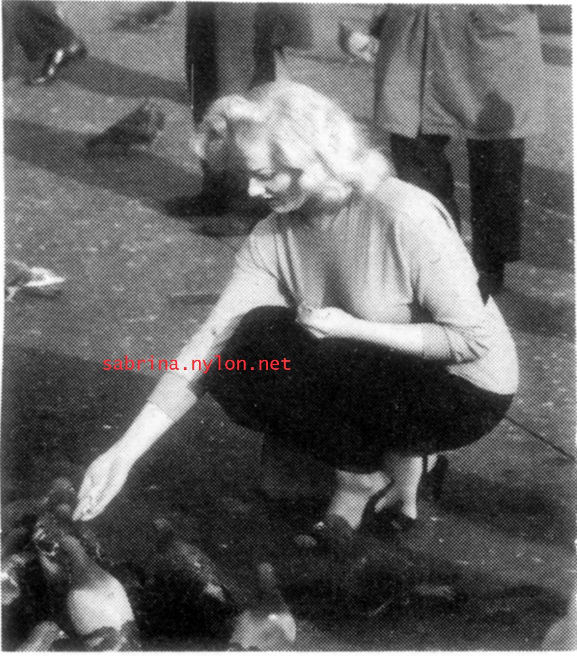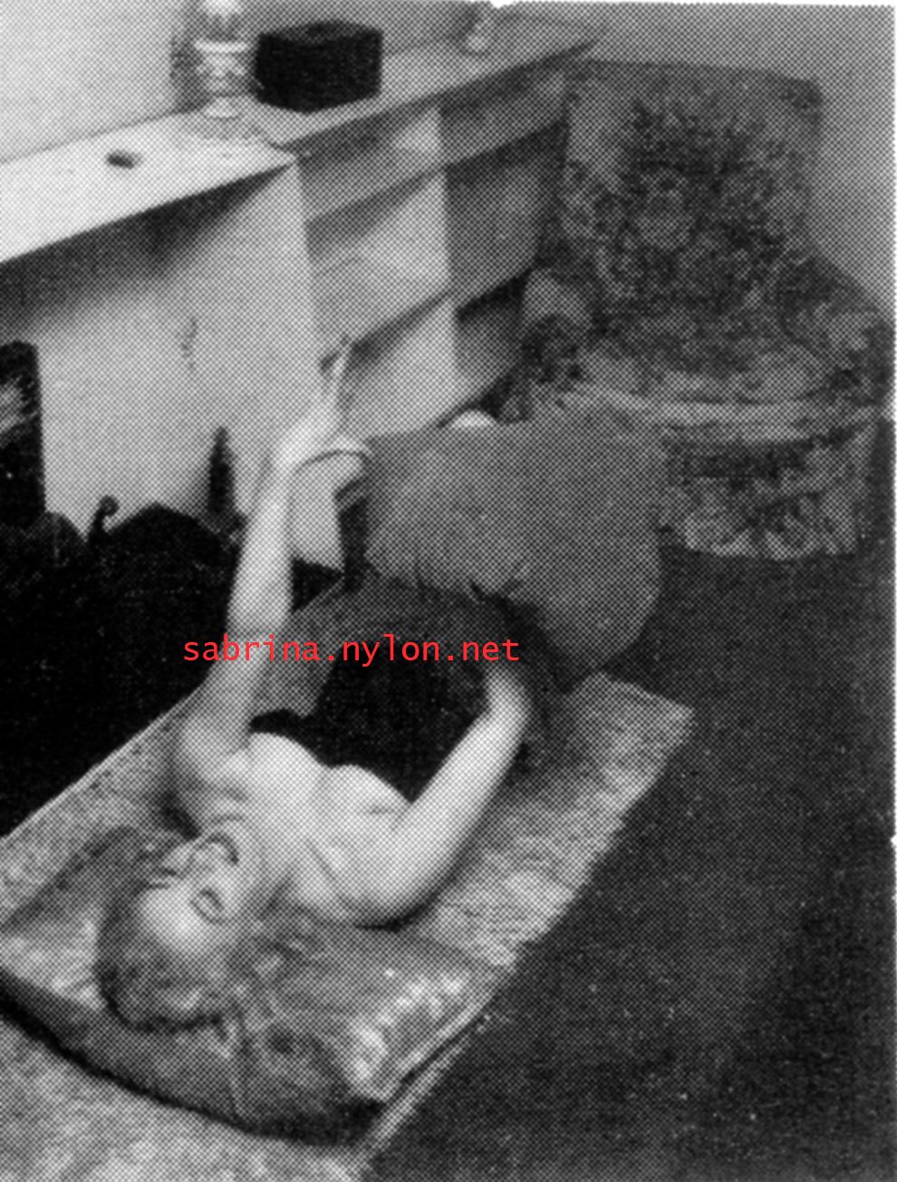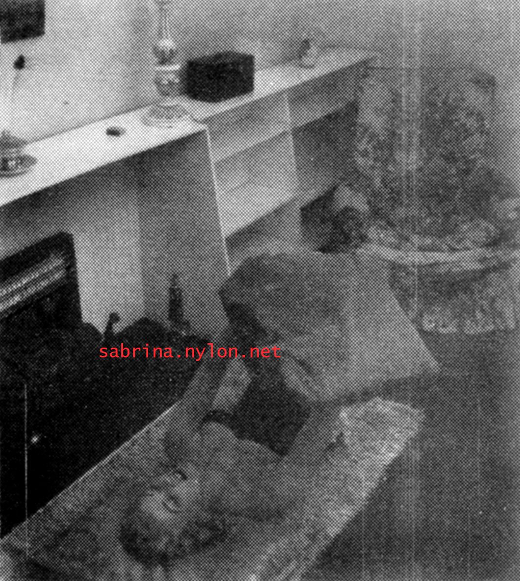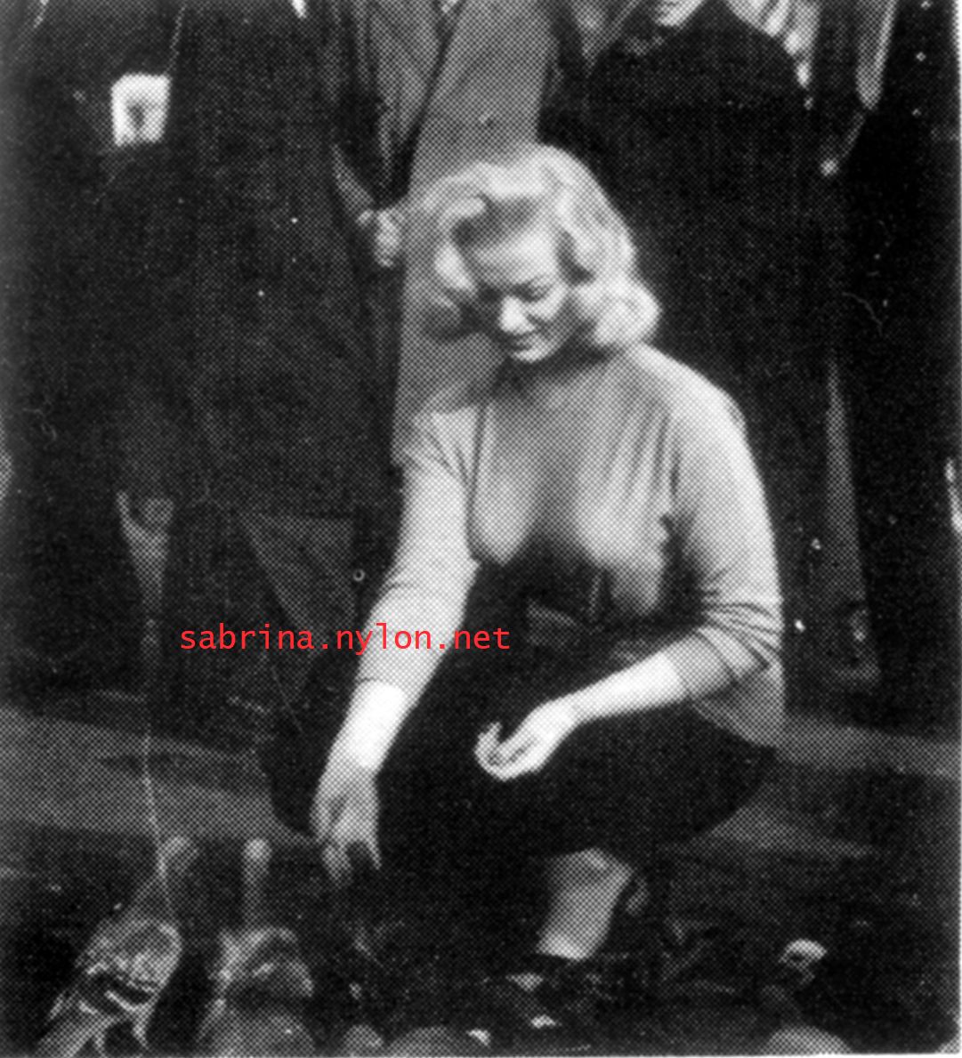 | Dear reader. Let me take you back to a strange time - the 1950s - probably in London. A place and time of fog, The Times , stiff upper lips, Oxford Commas, and post-war privations. A place where freshly-demobbed men such as Private Parts, Corporal Pleasure, Major Lust and General Frustration wandered the cobbled streets in search of colour, excitement and unrationed titillation. A certain gentleman (for, surely, a lady is unlikely to have been the instigator of the curiosity I am about to disclose) was smitten by a lass of comely proportions whom he had seen on the television programme called "Before Your Very Eyes". She was mysteriously named "Sabrina" and her three-dimensional charms inspired this chap to devise, produce and distribute a publication most singular and mysterious. It bore but a single word betwixt its inaugural and ultimate leaves: SABRINA . The rest is silence. Whence, when and wherefore it was commissioned is unknown. Its copyright status is questionable. Many of the photographs are taken from known photoshoots such as (what I call) the Shagpile and Walkabout series, but seem to have been rejected by newspaper or magazine editors/publishers. Telltale examples are those where Sabrina is facing away from the camera obscura, or the photographic quality (e.g. exposure or framing) is deficient. Photoshopping was needed to improve the quality of the scans of the tiny images, but nothing was omitted. Perhaps the proprietor of this publication purloined the pictures from his place of employ - perchance from a photograher, publisher or printer. But what is germane at this juncture is that the journal exists and I have it. And now, so do you*... its multitudinous pictures and its single word: Sabrina. *If you care to purchase this mysterious magazine, please get in touch . Jump to the categorised images . |