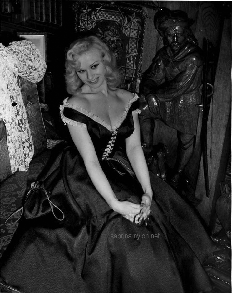 | At that time the "Sabrina Slept Here" publicity stunt had been targeted at several Stately Homes, and Sabrina duly slept in Thoresby Hall on the night of 28th March 1957, the cause of much bawdy humour among male workers across the estate. It had been the Major's plan to have Sabrina dress as Maid Marian the following day and serve the first guests with venison. Also see Exposed (18 Oct 1957) and See Sabrina in the Thoresby Hall brochure from 2008 Sabrina plays Maid Marian during her visit to Thoresby Hall