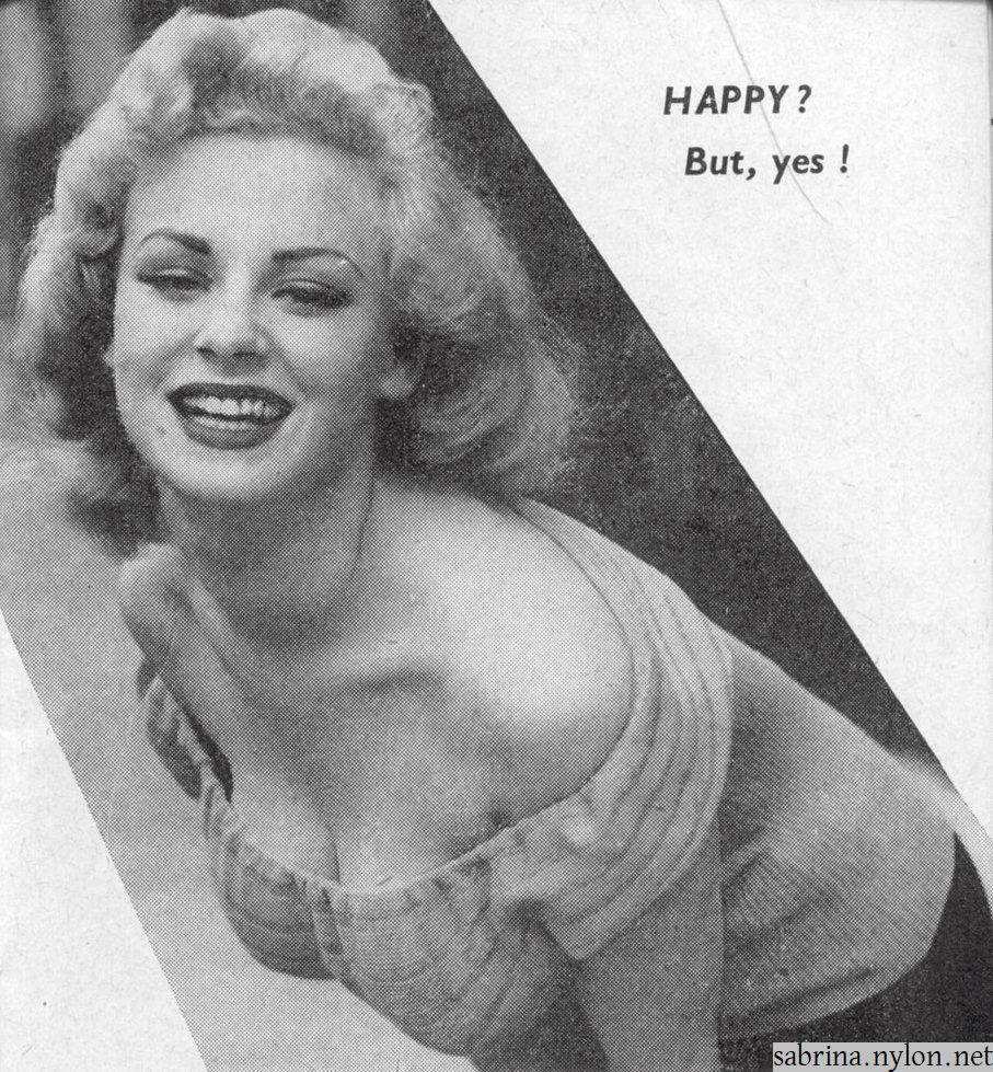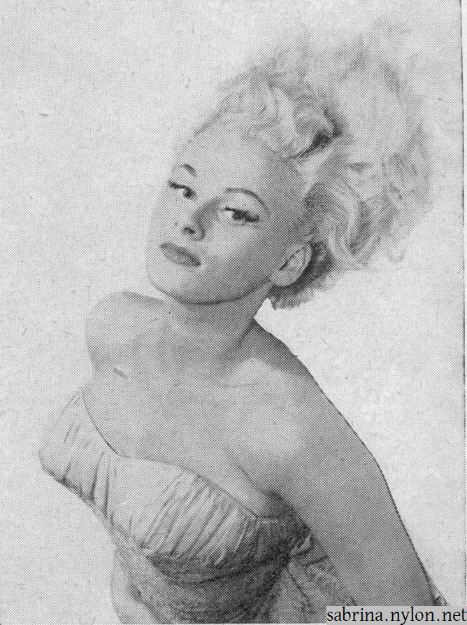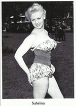 When Sabrina - then Norma Ann Sykes - came to London from her native Blackpool [Sabby came to London from Blackpool, but she was native to Stockport - Ed.] in 1954, she could have had little idea of how far she was going to travel in so short a time. Sabrina, however, is hardly the sort of person who could go unnoticed for very long, and she soon became much in demand as a photographic model, her blonde charm often being seen decorating the pages of the better known men's magazines. |