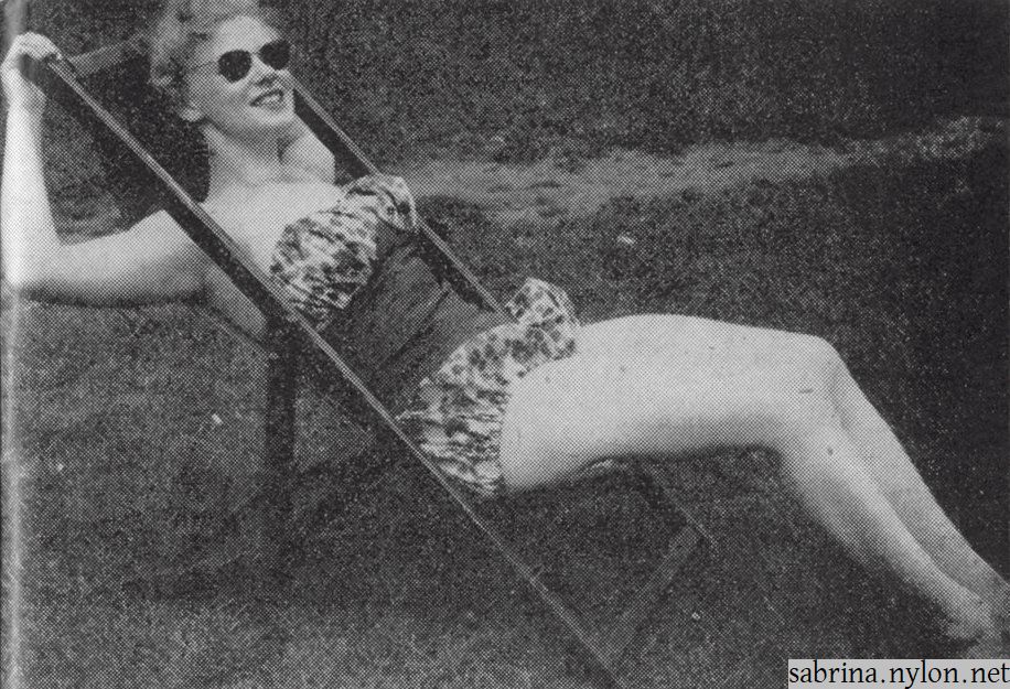 Another caption for the same photo, from The Windsor Daily Star, 10 August 1957: WR-UFF! — Sabrina—and friend—seen enjoying the sunshine on the beach at Southsea, near Portsmouth, Eng. |