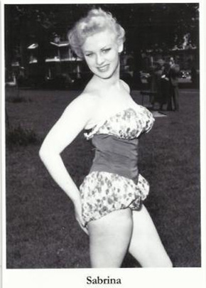 About this time TV producer Bill Ward was looking for a girl for the "Beauty Spot" feature in Arthur Askey's TV series Before Your Very Eyes , and when Sabrina's photograph was sent in by her agent, along with 23 others, he decided his search was over. The rest is history. |