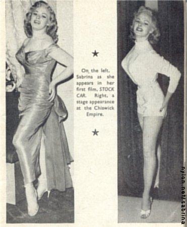 | "On the left, Sabrina as she appears in her first film, Stock Car. Right, a stage appearance at the Chiswick Empire ." | ![]() |