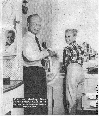 at all! When she first came to London at the age of seventeen, she told me, she lived in a very different flat, in a much less classy neighbourhood, earning her board and lodging by making necklaces and artificial jewellery. She was waiting, not for a place in the chorus, but for a bed in a certain hospital, so that she could have yet another operation on the leg that had been most affected when at the age of twelve, in Blackpool, she had been stricken down with polio. To try and earn a little more money to pay for expensive post-hospital treatment, she posed for the cover of a magazine . This was seen by a theatrical agent, and when Arthur Askey's producer rang up for a blonde to act as a dumb foil for Big-Hearted, Norma was sent in a batch of a dozen. Supposing she had not been the one picked out, because she looked just right? Would her career have ever blossomed at all? The girl who became Sabrina is quite certain herself it wouldn't. As it was, Norma Sykes was only engaged for one show. It was a speculation, a desperate gag to find something new to entertain the viewers. Would it work? Would the gimmick produce dividends? The rest of the story is already television history. As soon as the programme was over, the telephone began to ring and went on ringing. Who was the dumb blonde? Who was Sabrina? Sabrina is no longer dumb. She is not only in the big money today, she is saving money. Soon she is moving into an impressively large house she has bought in St. John's Wood, where she is planning to have two police dogs living in the garden room to protect her, instead of her toy tiger, and at the same time, to let off the top flat for ten guineas a week. Northerners are famous for their shrewdness. Sabrina is no exception. "When your present engagement ends," I asked, "do you plan to return to television in your own series?" "Not unless they will let me act. I really mean that, I feel I can act comedy now. I did a spot in a film the other day, and the producer swears it is a success. I hope to do more films in the future, and play real parts. I feel my best chance of being accepted as a real person lies in films." Having spent two hours with her, I understand exactly what she meant. She was a real person to me now. But how could she convince the rest of the world? Or even the young men who lunched her and supped her, because it pleased their own ego to be seen in public places with Sabrina? We talked about that with the same complete honesty that we had talked about her career. No, she had never been really in love yet. Oh, yes, she had a current boy friend, but both of them knew it was simply a passing phase. Both of them, too, were in Show Business, and Sunday evening was their only free night for dates. "Evening is spoilt""The trouble is," Sabrina admitted, "that I like going out to a movie in slacks. It's such a relief after all those special creations I have to wear in the show. But he doesn't like it, he wants me to dress up as a compliment to him, but as soon as I do everyone recognises us, and the evening is spoilt. At least it is for me." I could see it happening, can't you? Her longing to look like any other girl for a change, anonymous in a crowd, sucking the kind of ice-cream she always sends for in the interval at the theatre. "Haven't you any girl friends?" I asked. Someone she could confide in, someone who was always there at the other end of the phone. Sabrina shook her head. "Not a single one." I could understand that. It really wasn't her fault. At a time when other girls were making friends for life at school she was isolated in a hospital, a cripple, apart. Later, rocketed suddenly into the headlines, she had no one of her own age to share her experiences on equal terms. She felt, rightly or wrongly, that the other girls in the show were jealous of her. My companion wasn't in the least sorry for herself; she was being completely straightforward. As when I suggested that it would all change when she did finally fall in love with someone whom she knew she wanted to marry so that he could be the father of her children. " I should hate to have children ," she said at once, with absolute finality. And when she said that, I realised it was the secret key really to her whole personality. She herself is still a child at heart, a child, too, far from home, a bit lost and forlorn, for all the gallant, hard-boiled front she adopts towards the world. Found a friend