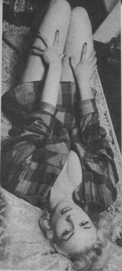 Sabrina, the British war cry in answer to America's Marilyn and Jayne, feels she needs only one name to get by. And with her looks, few would deny it. Even by Hollywood standards - Sabrina is an extremely beautiful girl. She's natural in every way, from her blonde hair to her eye-catching sweater-filling 40-22-36 figure.