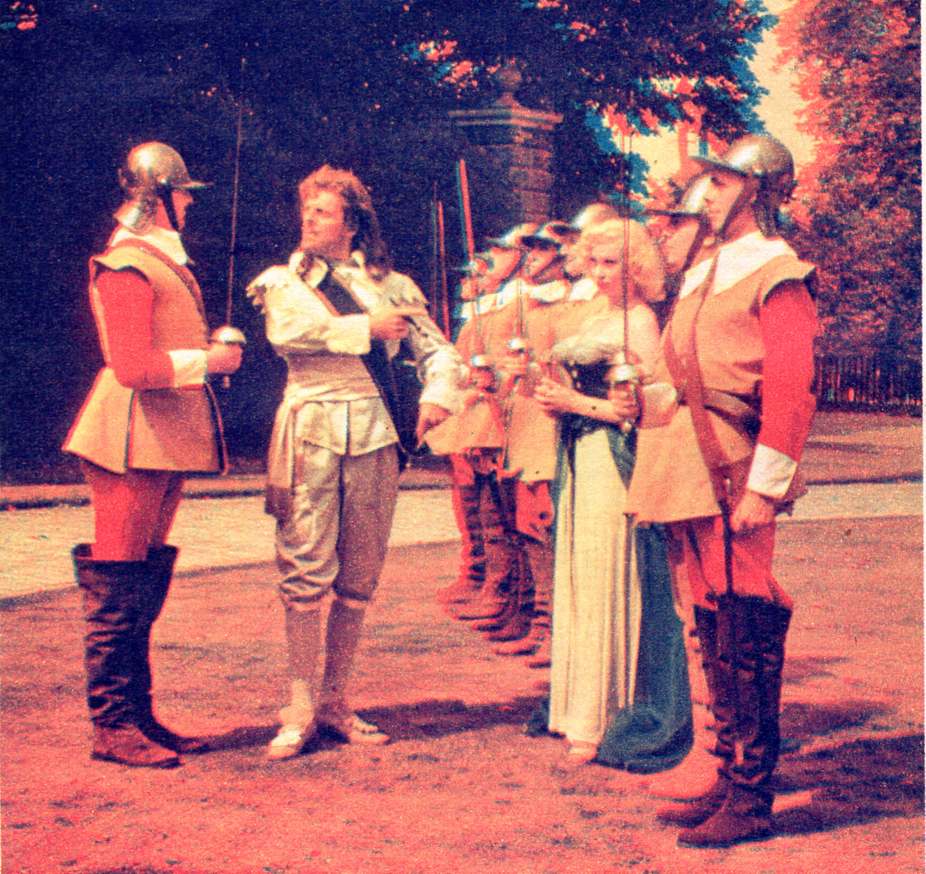 | Terry-Thomas and Sabrina put THE CIVIL WAR IN NEW PERSPECTIVEPhotographed by Carl Sutton Every man has his pipe-dreams - even if it takes a cigarette holder to evoke them. Through a haze of smoke, Terry-Thomas sees himself as a seventeenth century cavalier, called to defend Sabrina against a pack of Puritans.INTO MY DREAMS. I stand - a gallant, by Vancyck - amongst the Roundhead soldiery. And there amongst them, too, is a girl. She is, somehow, familiar, but why is she there? Anyway it is clear that I must rescue her (below) - come what may.