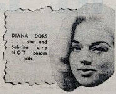 The hulking Yeardye was until recently the light-o'-love of that other blonde bombshell Diana Dors. Tommy, seemingly unscarred by his recent falling out with Diana over financial and domestic matters, has now assumed the status of Sabrina's business manager. The man who some while ago was said to have “no means of livelihood” now plans to run a farm and raise horses for her. Said she: “The farm idea is Tommy’s. I’ve wanted to go into business for some time, but I didn’t do anything about it till Tommy came along. I haven't a clue about farms. I’m leaving it all to him. “I wouldn’t live on a farm myself If you paid me. I'd go mad. I can’t stay in this flat for very long, even. I must always be on the go." While Sabrina's tastes coincide strikingly with those of Diana Dors in many ways, it would be inaccurate, however tempting, to describe them as bosom pals.