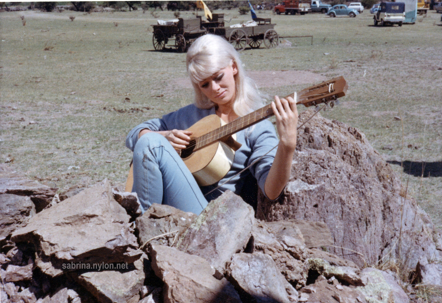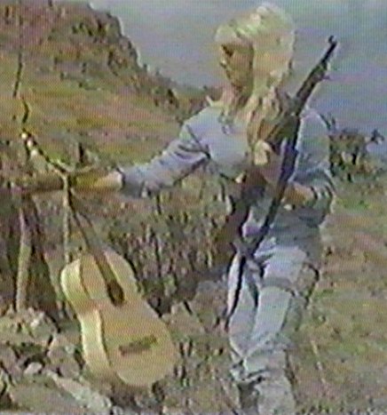 | Sabrina is Milly, part of a religious sect travelling across Africa to their promised land, The Mountains of the Moon. Assailed by ne'er-do-wells, they are saved by Tarzan (who seems inordinately skilled in karate and judo for a jungle-raised chimpman). It is hard to accurately say when this film is set - they drive trucks from about 1940, wagons from about 1840, horses from around 1640, but their "Peace and Love" mumbo-jumbo is very 1967. |