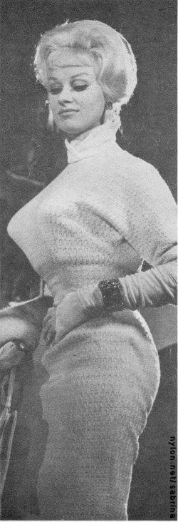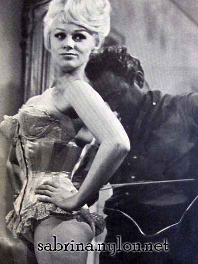 | Ah, that dress and that fur... Her scenes were badly written, and the songs were excruciating, but Sabrina battled through as best she could with the material she had to work with. Thanks to Paul M for pointing out this SIHH promo shot from eBay. From the Modern Man Yearbook 1963 |