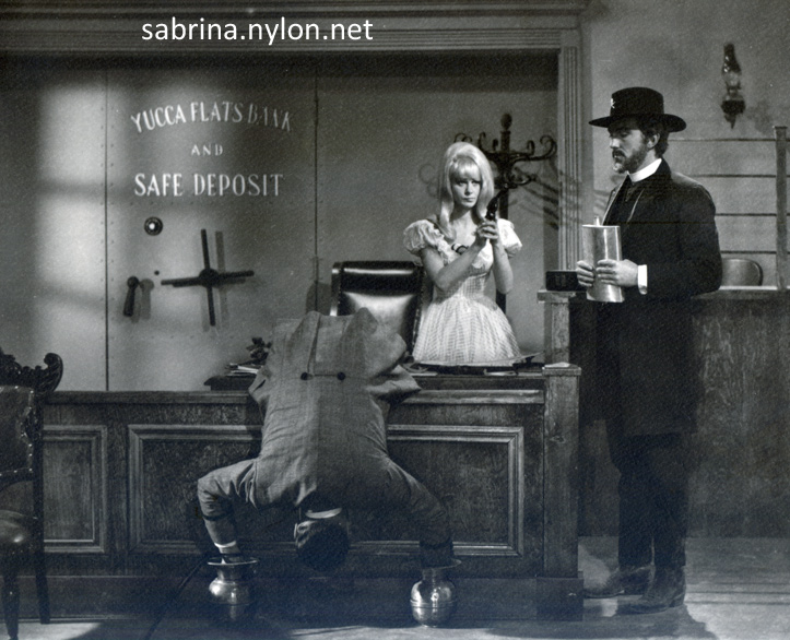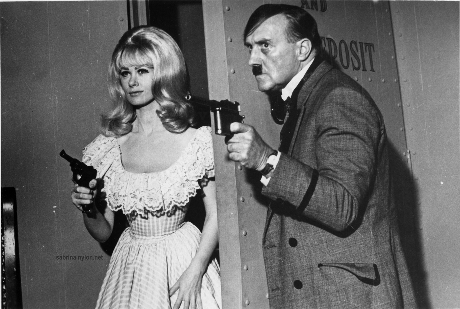 Sabrina with Hitler, and the second-biggest hipflask I've ever seen DVD review from avmaniacs.com ... Albert Zugsmith takes over directing duties on "The Phantom Gunslinger", an odd blend of slapstick comedy and self-aware parody of westerns. Troy Donohue stars as a would be preacher fresh out of divinity school who arrives in the frontier town of Yucca Flats. It doesn't take long before a gang of seven criminals arrive and take the town hostage with the bumbling Donohue as the residents' only hope. When viewing the film, one can only assume that Zugsmith wished he could have been directing Charlie Chaplin or The Three Stooges. Over the top slapstick gags are found at every turn and while initially the humor is fun, it runs its course far too quickly. Gags and dialogue are recycled in hopes that what worked earlier in the film will pack another punch. Unfortunately, a rolling of the eyes and a look at your watch is all that will come of this. On a positive note, the colorful costumes are quite a sight to see as well as the usage of the small but effective sets the film was shot on. Donohue does what's expected of him but after his character is shot in the head (for the first but far from the last time) and whisked away to heaven, the film really starts to grow tiresome. It's hard to understand exactly what Zugsmith was trying to achieve with "The Phantom Gunslinger" but it was pleasing to see a director so tickled by slapstick humor. The characters are far from interesting but all manage to get in on the physical hijinks which involve pies to the face and even broom fights. If the film was a little more polished and focused, "The Phantom Gunslinger" could have achieved to be a little better than decent. Unfortunately, only so many pies to the face and turkey legs used as handguns can go so far, "The Phantom Gunslinger" is not a terrible film but not necessarily a great one either. At best, the film is a curious novelty from a director who was still trying to get his rocks off with slapstick so late in the 1960s. VIDEO AUDIO