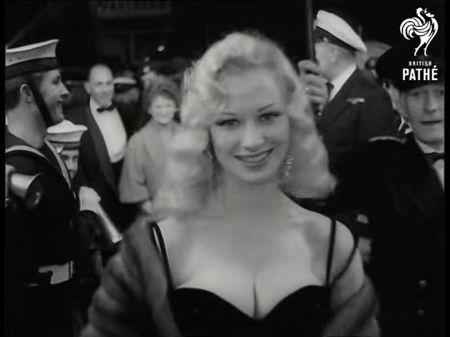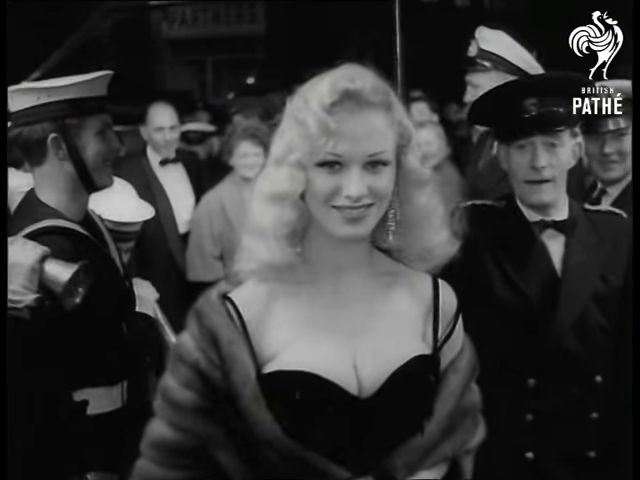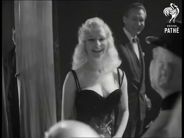 arriving, an umbrella is held up for her by a Commissionaire (she stumbles)