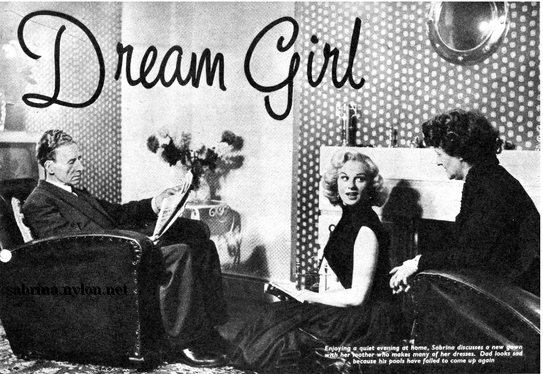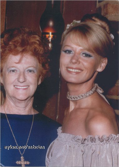| Undated photo. It looks like Sabrina is quite tired. Caption: Mum keeps and eye on her glamorous daughter. Sabrina goes to a party. |