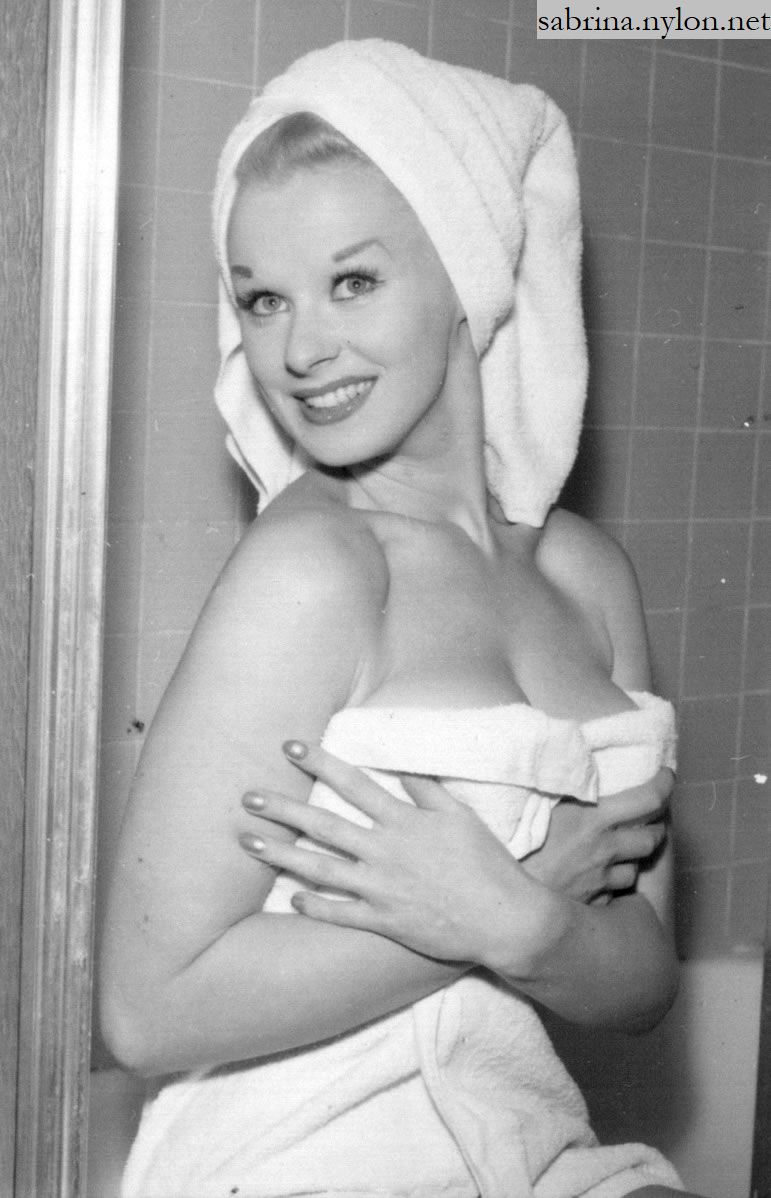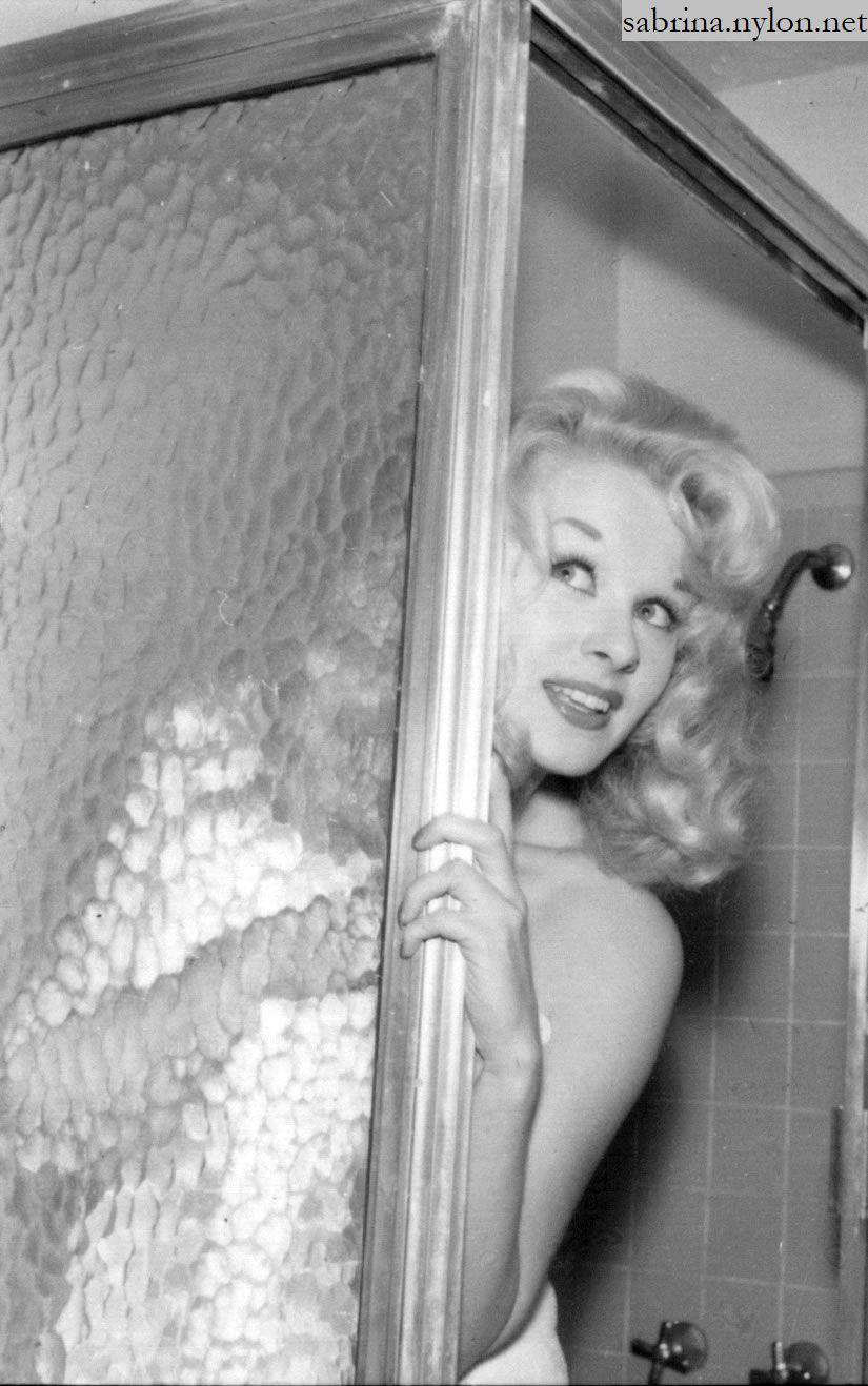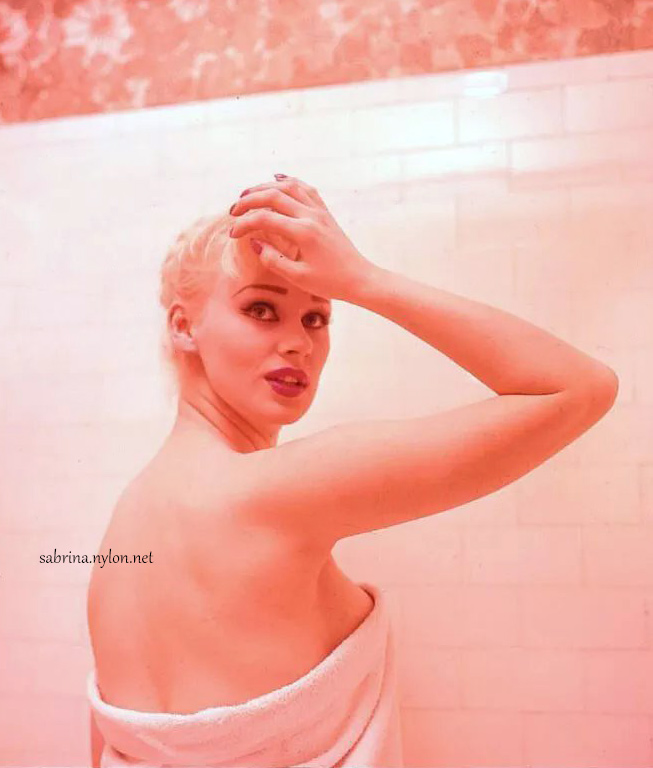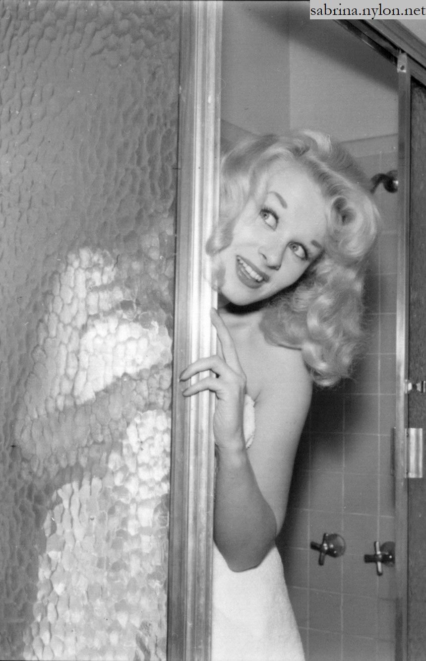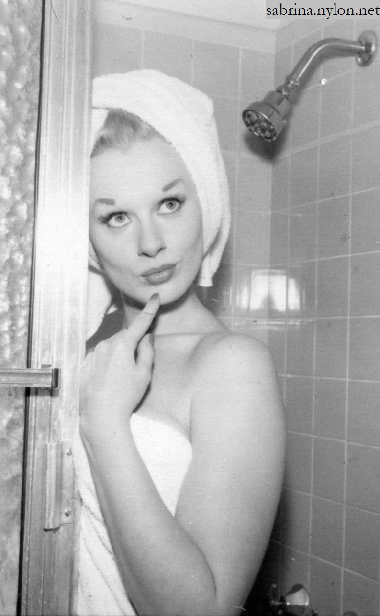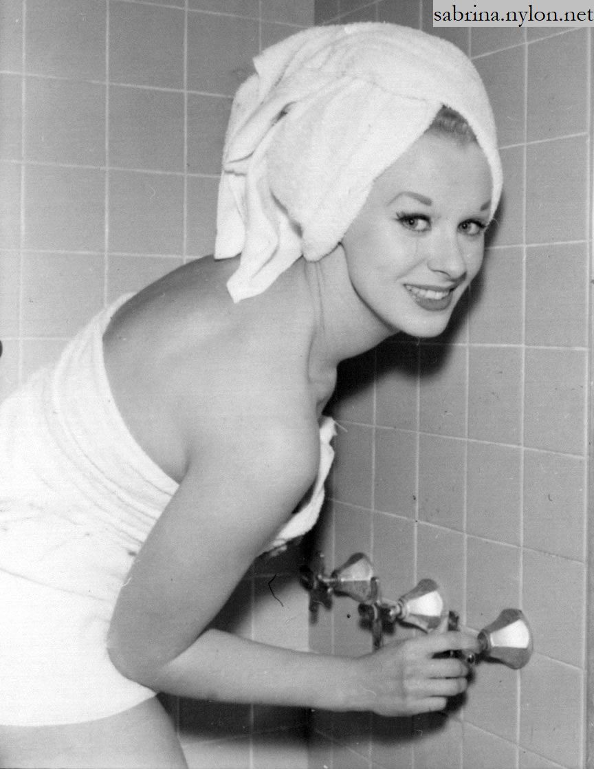 | It's frightening how often photopgraphers swooped in on Sabrina just as she was about to have a nice wash. Fortunately it always happened when she had a towel draped just right and she was enough of a lady to smile sweetly before ushering the members of the press out of her facilities. |