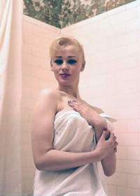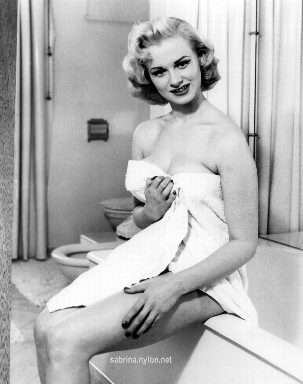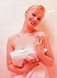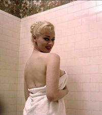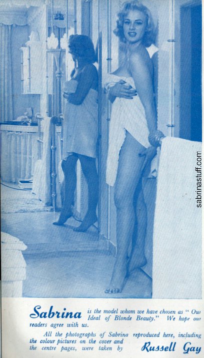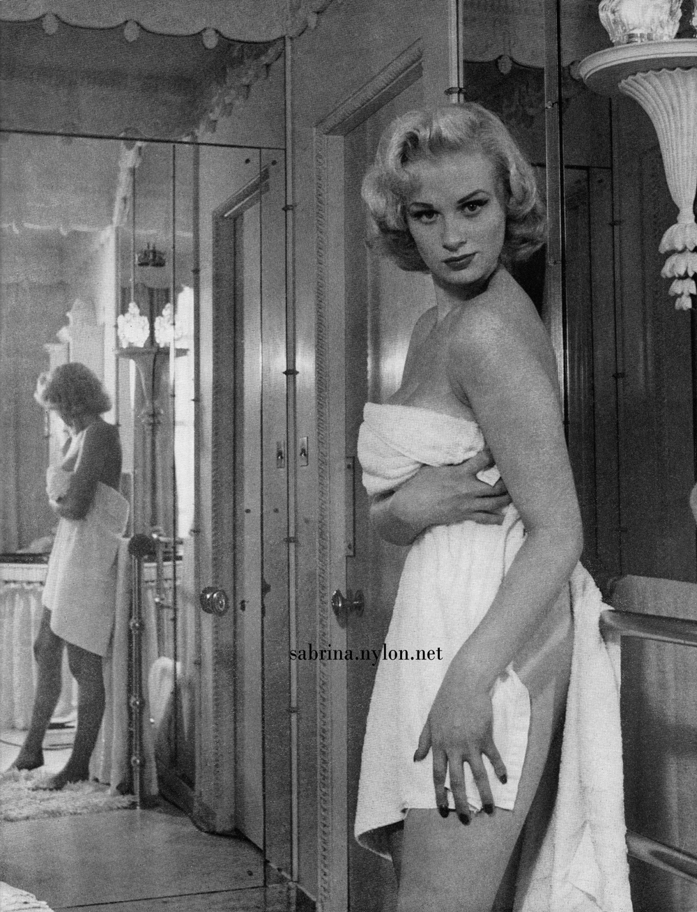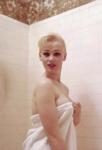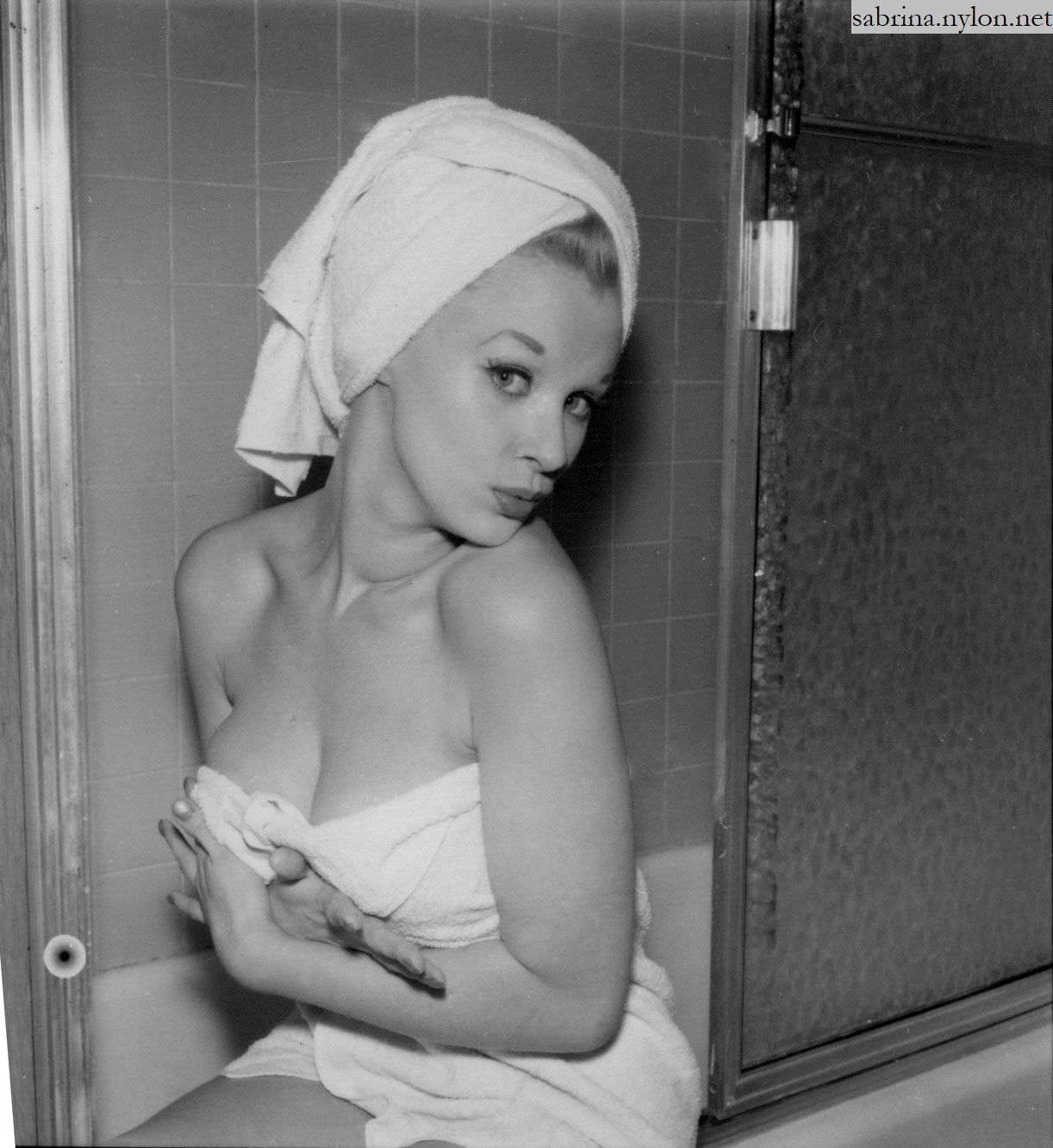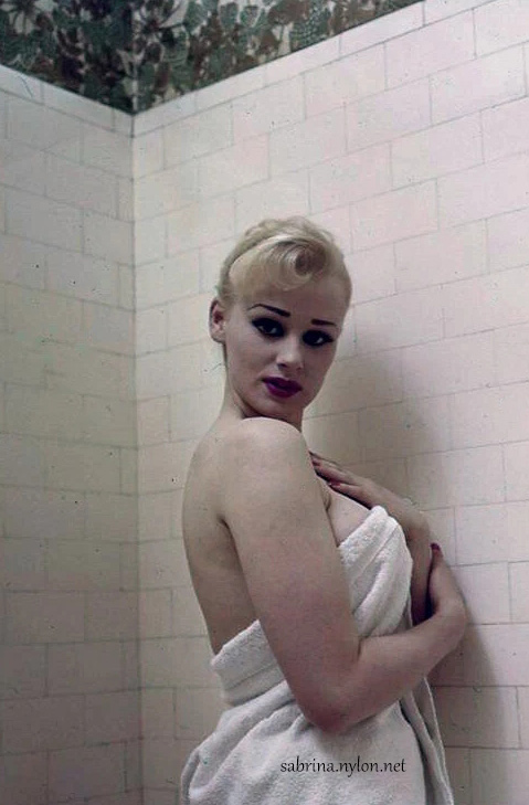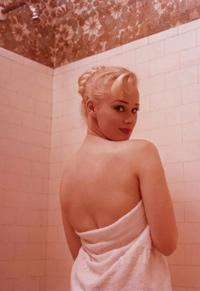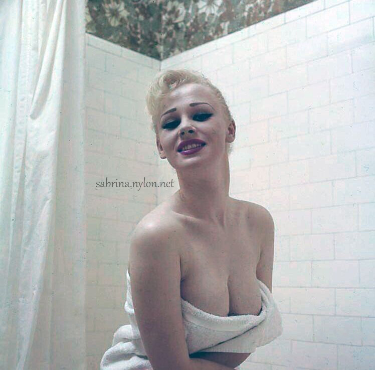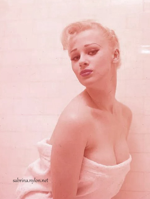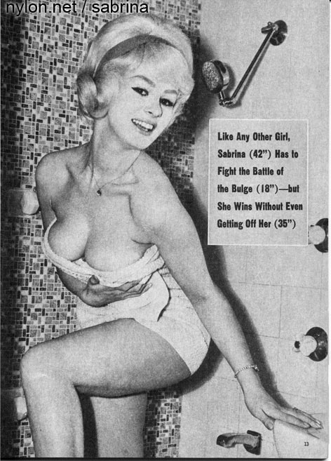 | It's frightening how often photopgraphers swooped in on Sabrina just as she was about to have a nice wash. Fortunately it always happened when she had a towel draped just right and she was enough of a lady to smile sweetly before ushering the members of the press out of her facilities. |