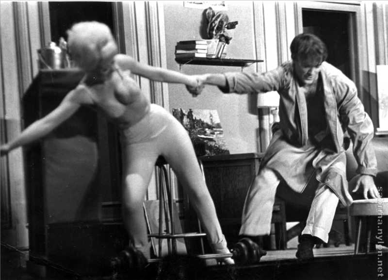 Sabrina views the scene in good taste, but her opinion is not necessarily shared by Virginia Mayo, the other leading lady.