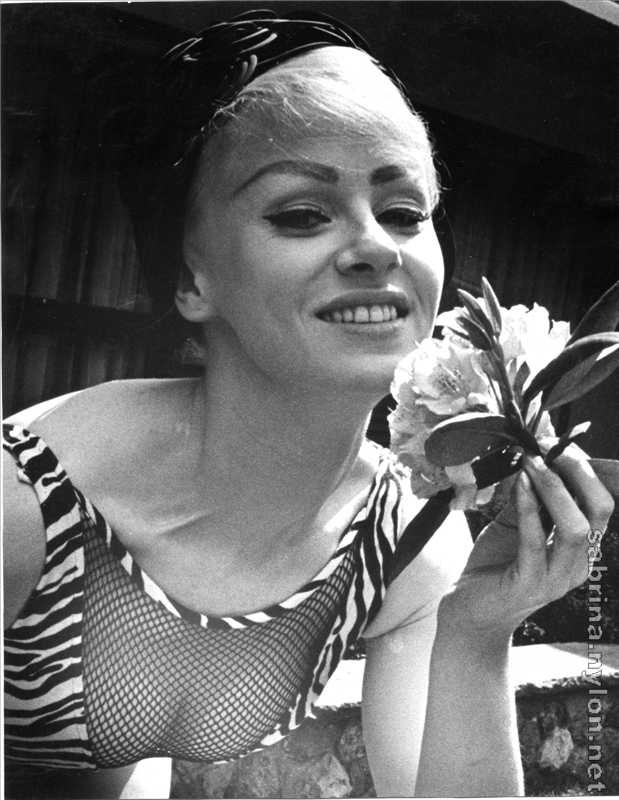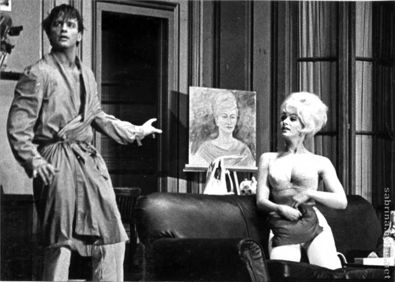 Sabrina, described as England's favorite playgirl, romps across the stage in two uninhibited scenes displaying fully the fullness of her charms.