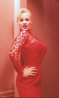 In (what I call) her claw dress or feather dress |