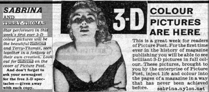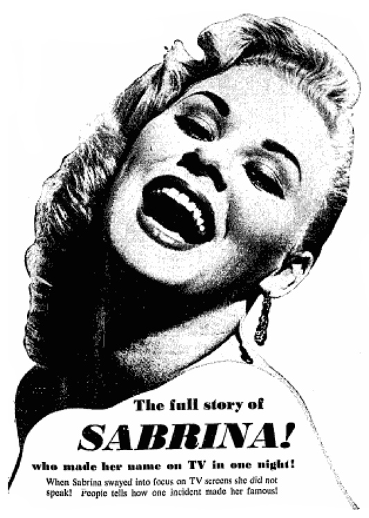 The BBC goes Berserk! ( Picturegoer , 19 March 1955) - recounts the rampant publicity the BBC engaged in to pre-promote Sabrina's first TV appearance.
