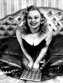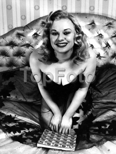 Portrait of Sabrina (Norma Sykes) 18 year old beauty model and swimming champion from Blackpool, Lancs [Lancashire], who has come to London to do film work. 1955