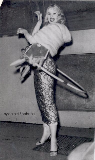 LOS ANGELES 13 March 1958... Fabulous 41½-5-18-36 SABRINA, the TV rage of England, arrived in Los Angeles from New York City for a four-day visit in Hollywood. She has been linked romantically with actor STEVE COCHRAN.